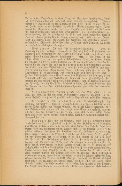 W i t t e l s h ö s e r: Warum gerade bei der Löffelschleiferei? — Exp. U: Weil es sich um einen Massenartikel handelt, während in anderen Schleifereien jeden Augenblick andere Gegenstände geschliffen werden.