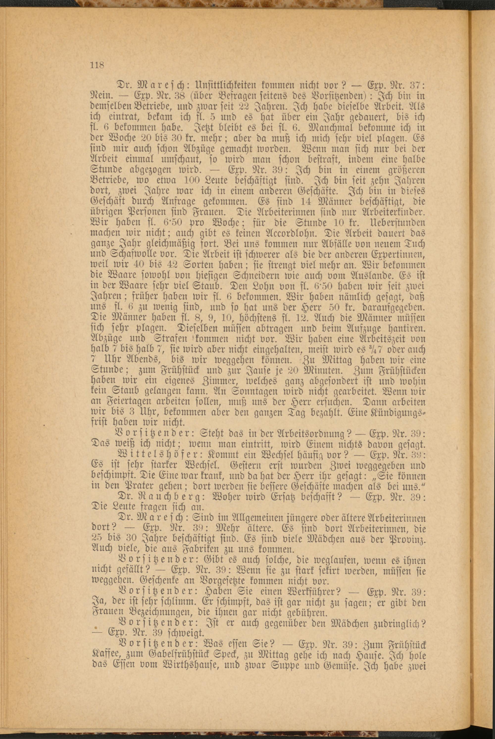 W i t t e l s h ö f e r: Kommt ein Wechsel häufig vor? — Exp. Nr. 38: Es ist sehr starker Wechsel. Gestern erst wurden Zwei weggegeben und beschimpft. Die Eine war krank, und da hat der Herr ihr gesagt: „Sie können in den Prater gehen; dort werden sie bessere Geschäfte machen als bei uns."