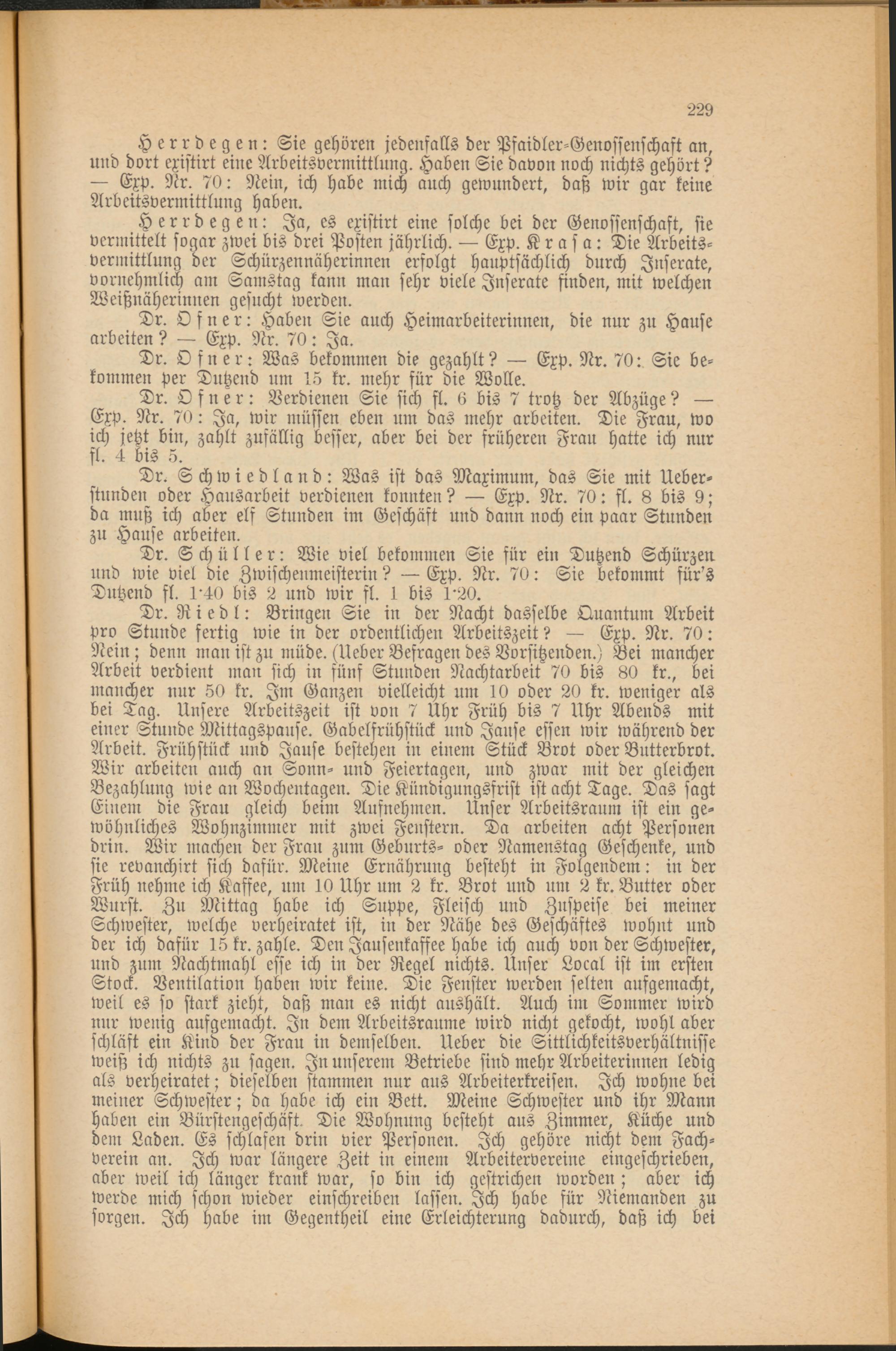 Dr. Schüller: Wie viel bekommen Sie für ein Dutzend Schürzen, und wie viel die Zwischenmeisterin? Exp. Nr. 70: Sie bekommt für's Dutzend fl. 1 40 bis 2 und wir fl. 1 bis 1'20.
