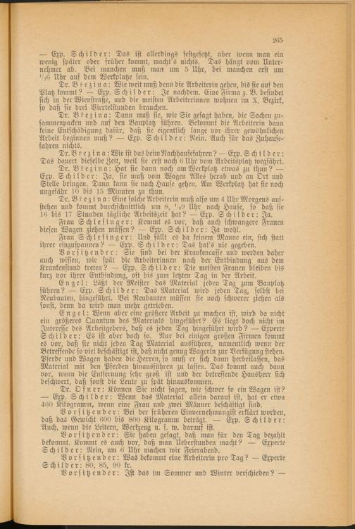 Engel: Läßt der Meister das Material jeden Tag zum Bauplatz führen? — Exp. Schilder: Das Material wird jeden Tag, selbst bei Neubauten, hingeführt. Bei Neubauten müssen sie noch schwerer ziehen als sonst, denn da wird man mehr getrieben.