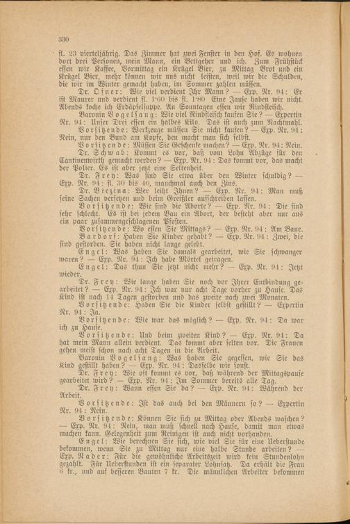 Dr. Schwab: Kommt es vor, daß vom Lohn Abzüge für den Cantinenwirth gemacht werden? — Exp. Nr. 94: Das kommt vor, das macht der Polier. Es ist aber jetzt eine Seltenheit.