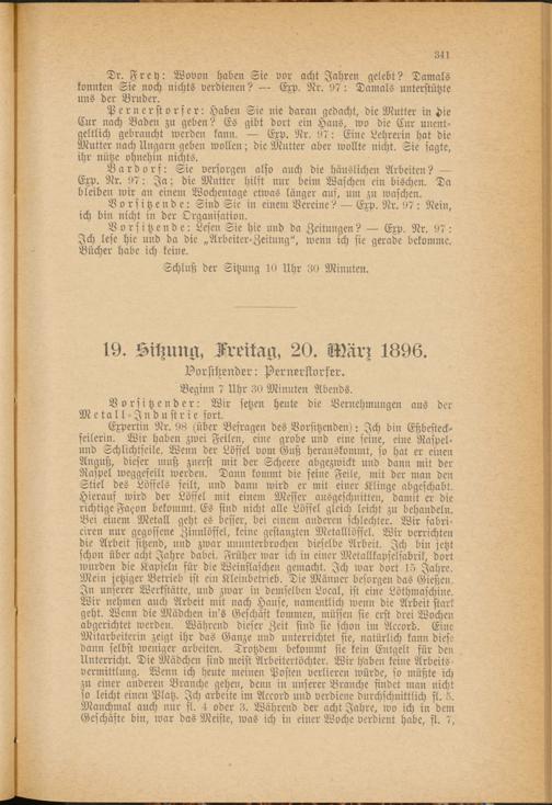 Bardors: Sie versorgen also auch die häuslichen Arbeiten? — Exp. Nr. 07: Ja; die Mutter hilft nur beim Waschen ein bischen. Da bleiben wir an einem Wochentage etwas länger aus, um zu waschen.