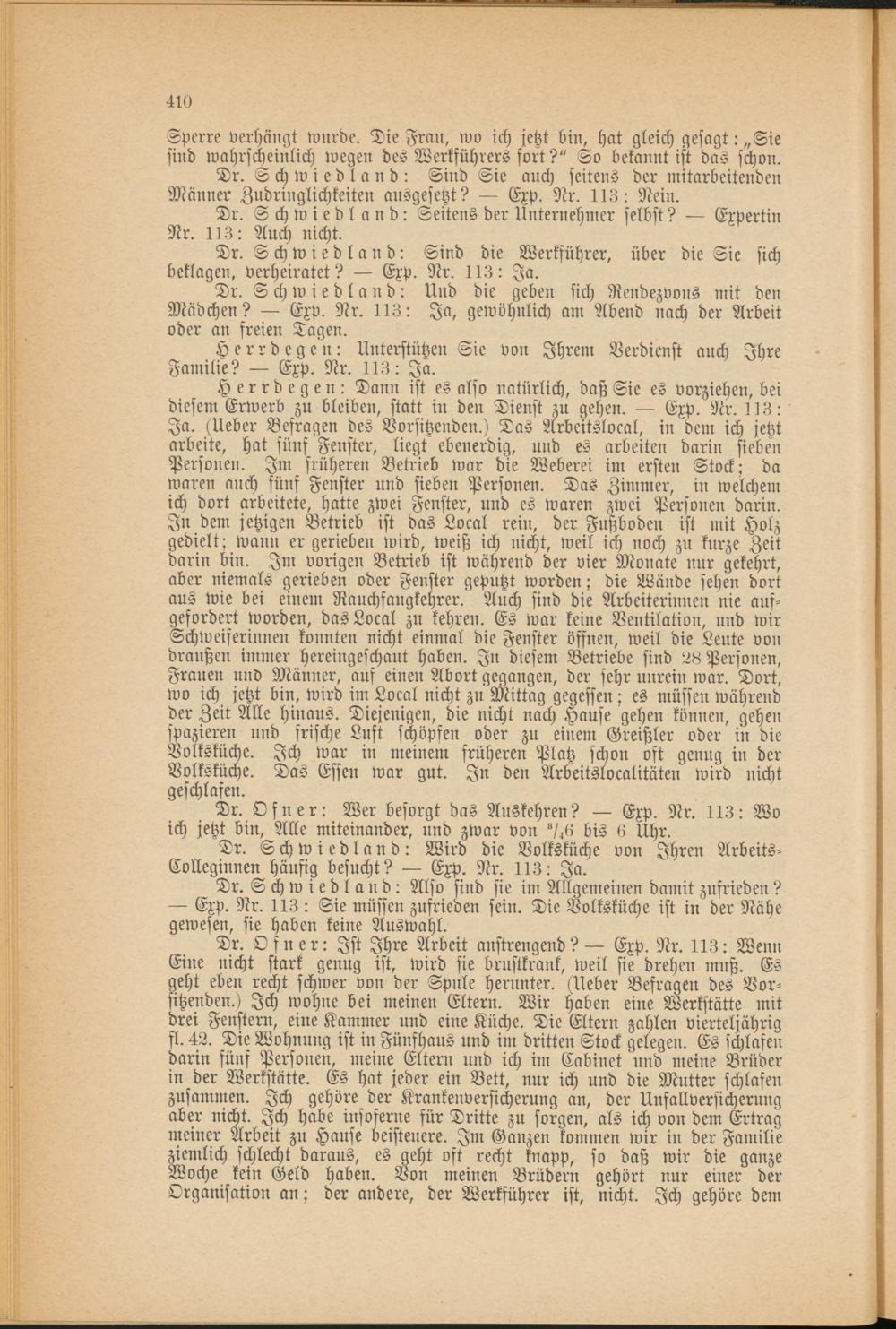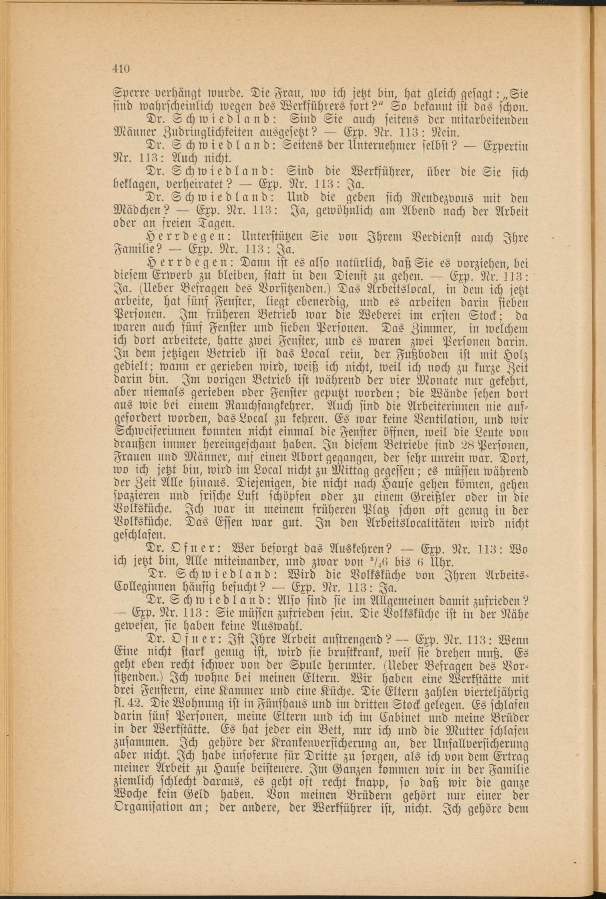 Dr. Schwiedland: Also sind sie im Allgemeinen damit zufrieden? — Exp. Nr. 113 : Sie müssen zufrieden sein. Die Volksküche ist in der Nähe gewesen, sie haben keine Auswahl.