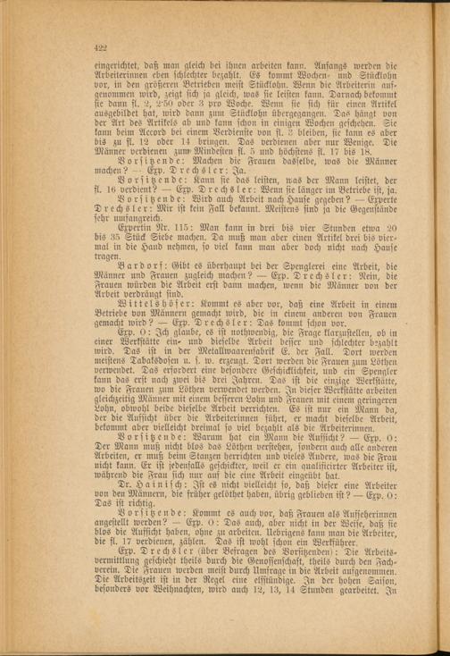 Vorsitzende: Kann sie das leisten, was der Mann leistet, der fl. 16 verdient? Exp. Drechsler: Wenn sie länger im Betriebe ist, ja.
