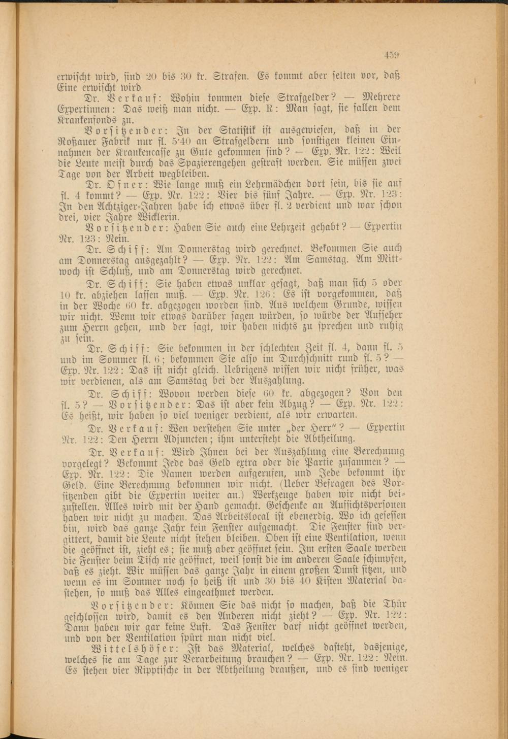 Dr. Schiff: Wovon werden diese 60 kr. abgezogen? Von den fl. 5? — Vorsitzender: Das ist aber kein Abzug? — Exp. Nr. 122: Es heißt, wir haben so viel weniger verdient, als wir erwarten.