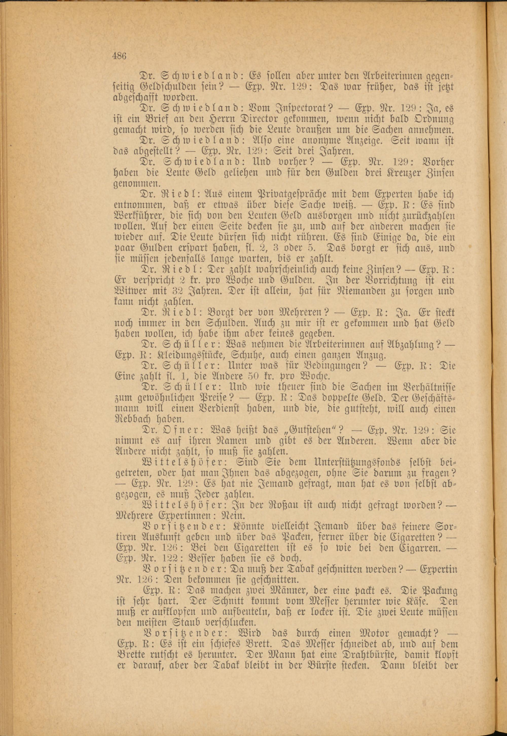 Dr. Schüller: Und wie theuer sind die Sachen im Verhältnisse zum gewöhnlichen Preise? — Exp. R: Das doppelte Geld. Der Geschäftsmann will einen Verdienst haben, und die, die gutsteht, will auch einen Rebbach haben.