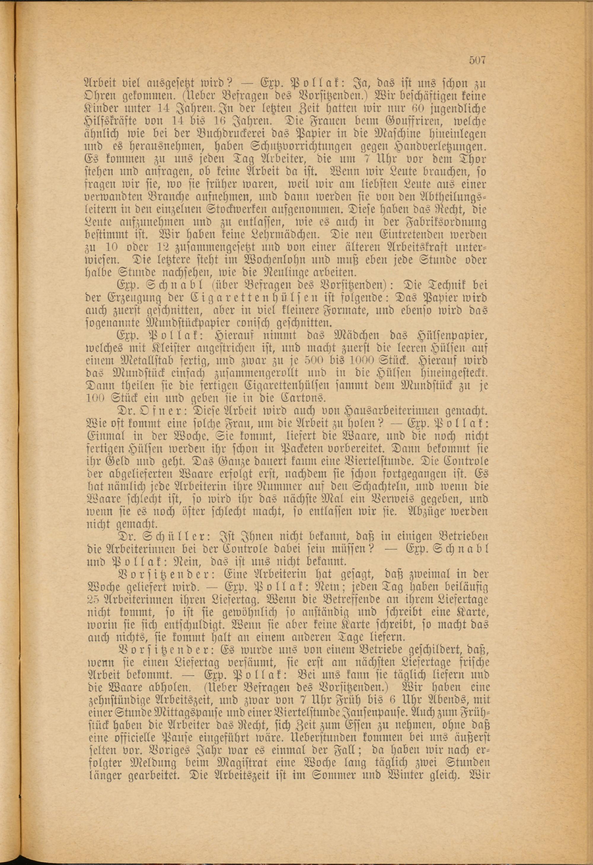 Dr. Schüller: Ist Ihnen nicht bekannt, daß in einigen Betrieben die Arbeiterinnen bei der Controle dabei sein müssen? Exp. Schnabl und Pollak: Nein, das ist uns nicht bekannt.