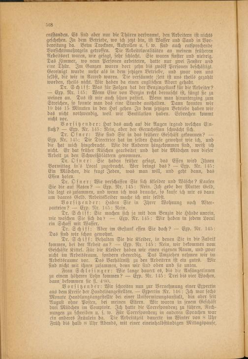 Dr. Schiff: Sie machen sich ja mit dem Benzin die Hände unrein, wie waschen Sie sich da? Exp. Nr. 145: Wir haben in jedem Local ein Schafs mit Wasser.