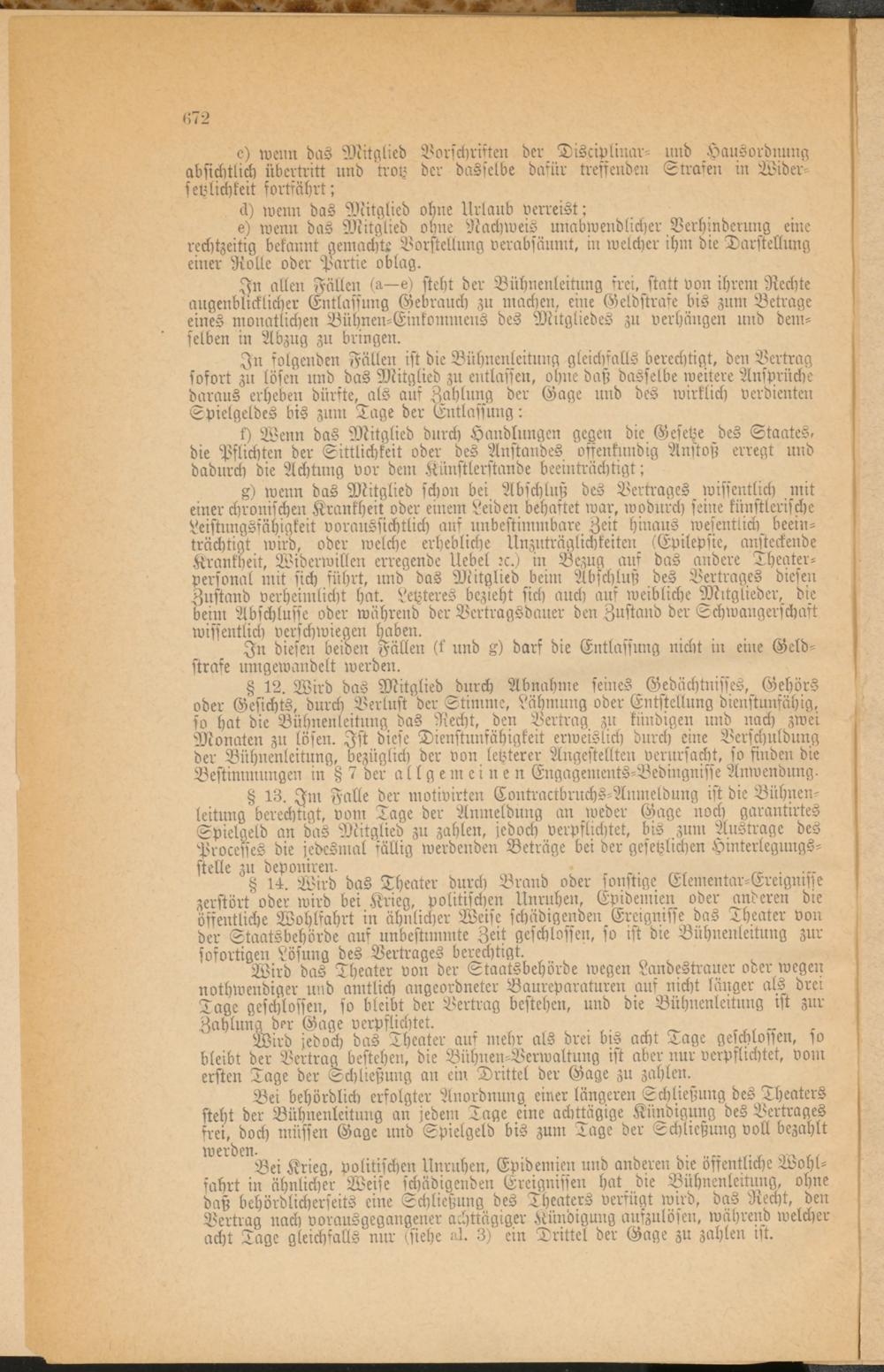 Bei behördlich erfolgter Anordnung einer längeren Schließung des Theaters steht der Bühuenleitung an jeden: Tage eine achttägige Kündigung des Vertrages frei, doch müssen Gage und Spielgeld bis zum -tage der Schließung voll bezahlt werden. ... ., ^ ,