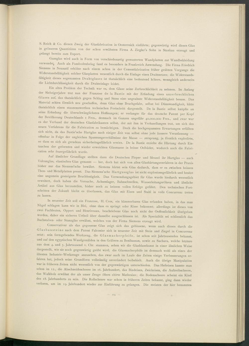 S. Reich & Co. diesen Zweig der Glasfabrication in Oesterreich einführte; gegenwärtig wird dieses Glas in grösseren Quantitäten von der schon erwähnten Firma A. Ziegler’s Sohn in Stankau erzeugt und gelangt bereits zum Export.