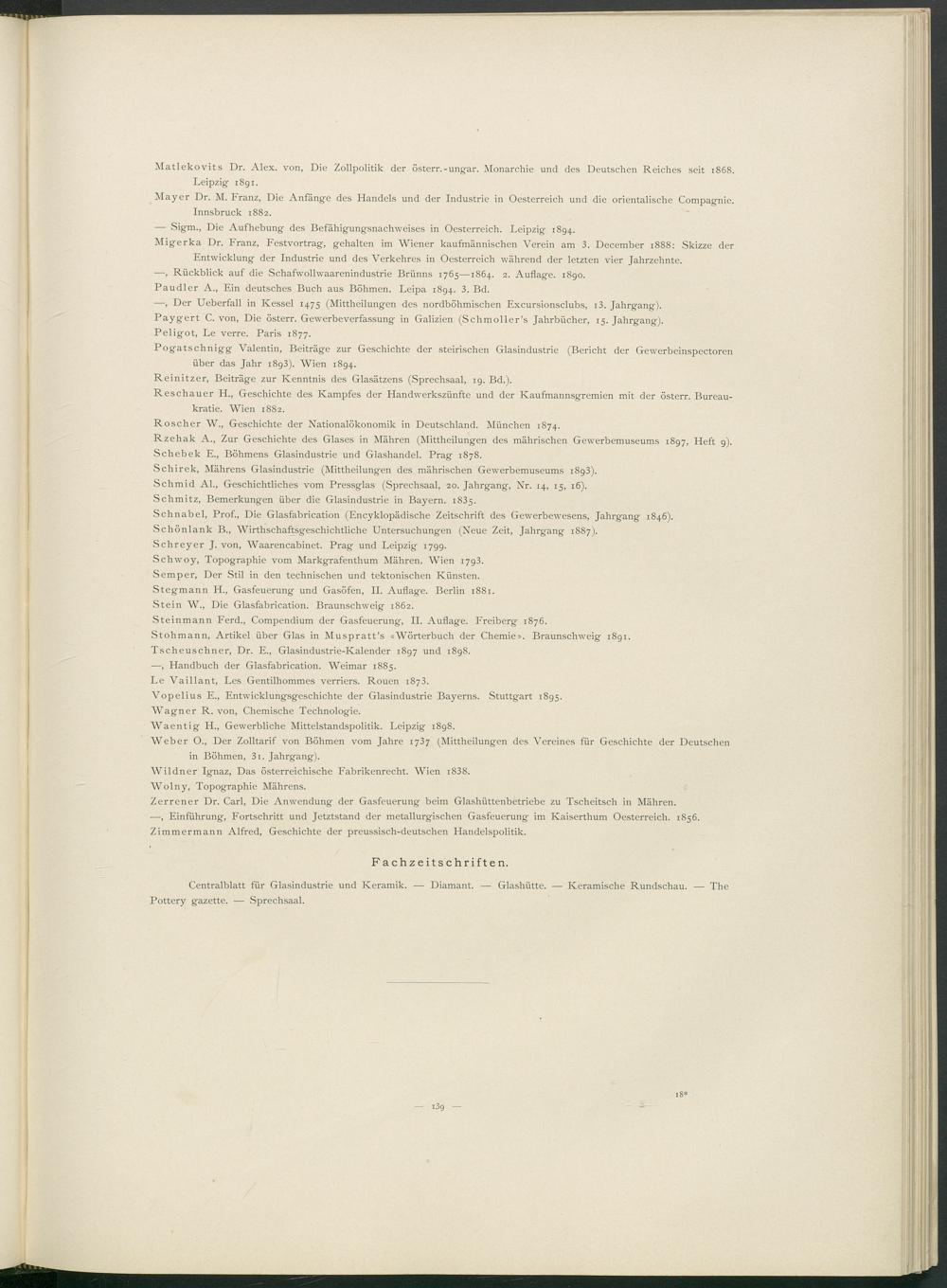 Rzehak A., Zur Geschichte des Glases in Mähren (Mittheilungen des mährischen Gewerbemuseums 1897, Heft 9). Schebek E., Böhmens Glasindustrie und Glashandel. Prag 1878.