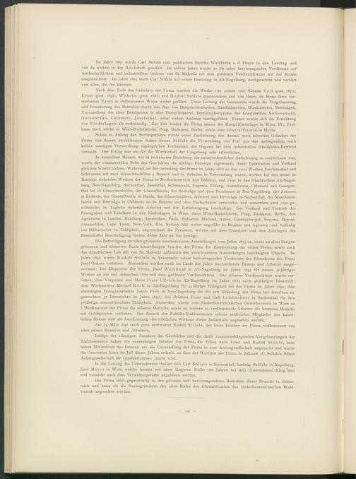 Die Firma zählt gegenwärtig zu den grössten und hervorragendsten Betrieben dieser Branche in Oesterreich und kann als die Neubegründerin des alten Rufes der Glasfabrication des niederösterreichischen Waldviertels angesehen werden.