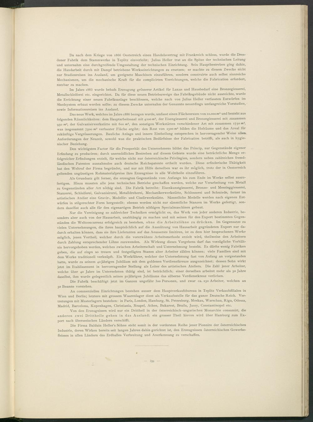 Die Firma Balduin Heller’s Söhne steht somit in der vordersten Reihe jener Pionnire der österreichischen Industrie, deren Wirken bereits seit langen Jahren dahin gerichtet ist, den Erzeugnissen österreichischen Gewerbe- fleisses in allen Ländern des Erdballes Verbreitung und Anerkennung zu verschaffen.