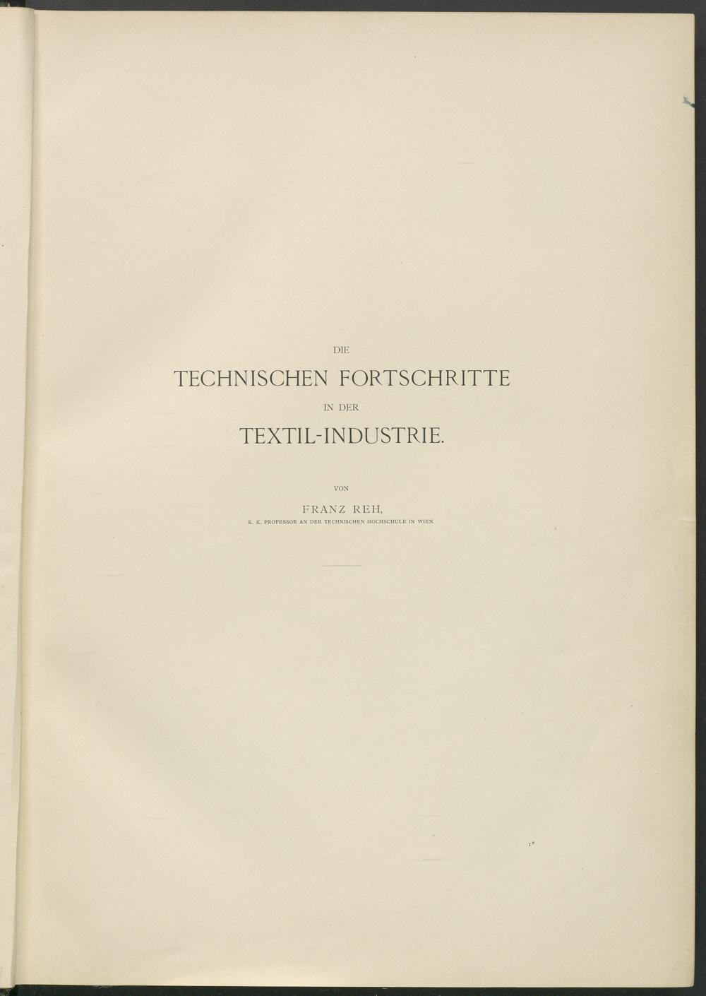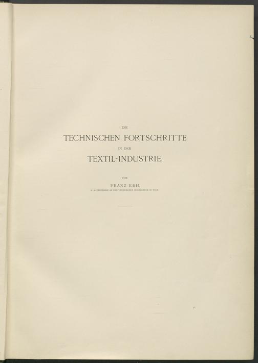DIE TECHNISCHEN FORTSCHRITTE IN DER TEXTILTNDUSTRIE. VON FRANZ REH, K. K. PROFESSOR AN DER TECHNISCHEN HOCHSCHULE IN WIEN.