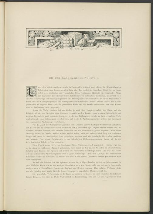 nter den Industriezweigen, welche in Oesterreich heimisch sind, nimmt die Schafwollwaaren- Fabrication einen hervorragenden Rang ein. Ihre natürliche Grundlage bildet der im Fände selbst in so reichlicher und vorzüglicher Weise vorhandene Rohstoff, die Schafwolle. Wenn wir das Gebiet der österreichischen Schafwollwaaren-Fabrication überblicken, so zerfällt es in die zwei Hauptzweige der Streichgarnspinnerei und Streichgarnwaaren-Fabrication mit ihrem Stammsitze in Brünn und der Kammgarnspinnerei und Kammgarnwaaren-Fabrication, welche letztere neben den Kamm garnstoffen im engeren Sinne auch die gemischten Stoffe und die Shawls einschliessen, mit dem Stammsitze in Reichenberg und Umgebung.