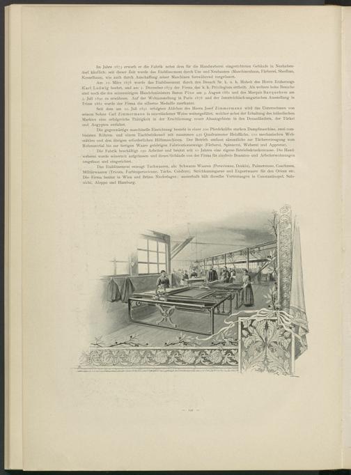 Die Fabrik beschäftigt 250 Arbeiter und besitzt seit 10 Jahren eine eigene Betriebskrankencasse. Die Handweberei wurde seinerzeit aufgelassen und dieses Gebäude von der Firma für zinsfreie Beamten- und Arbeiterwohnungen umgebaut und eingerichtet.