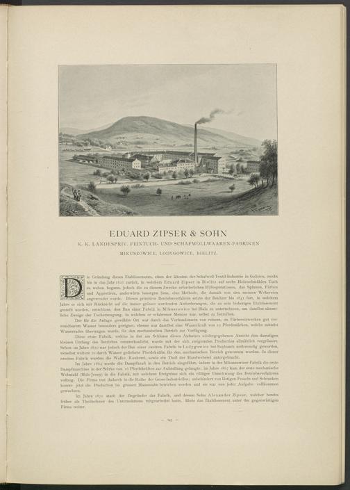 1 ie Gründung: dieses Etablissements, eines der ältesten der Schafwoll-Textil-Industrie in Galizien, reicht