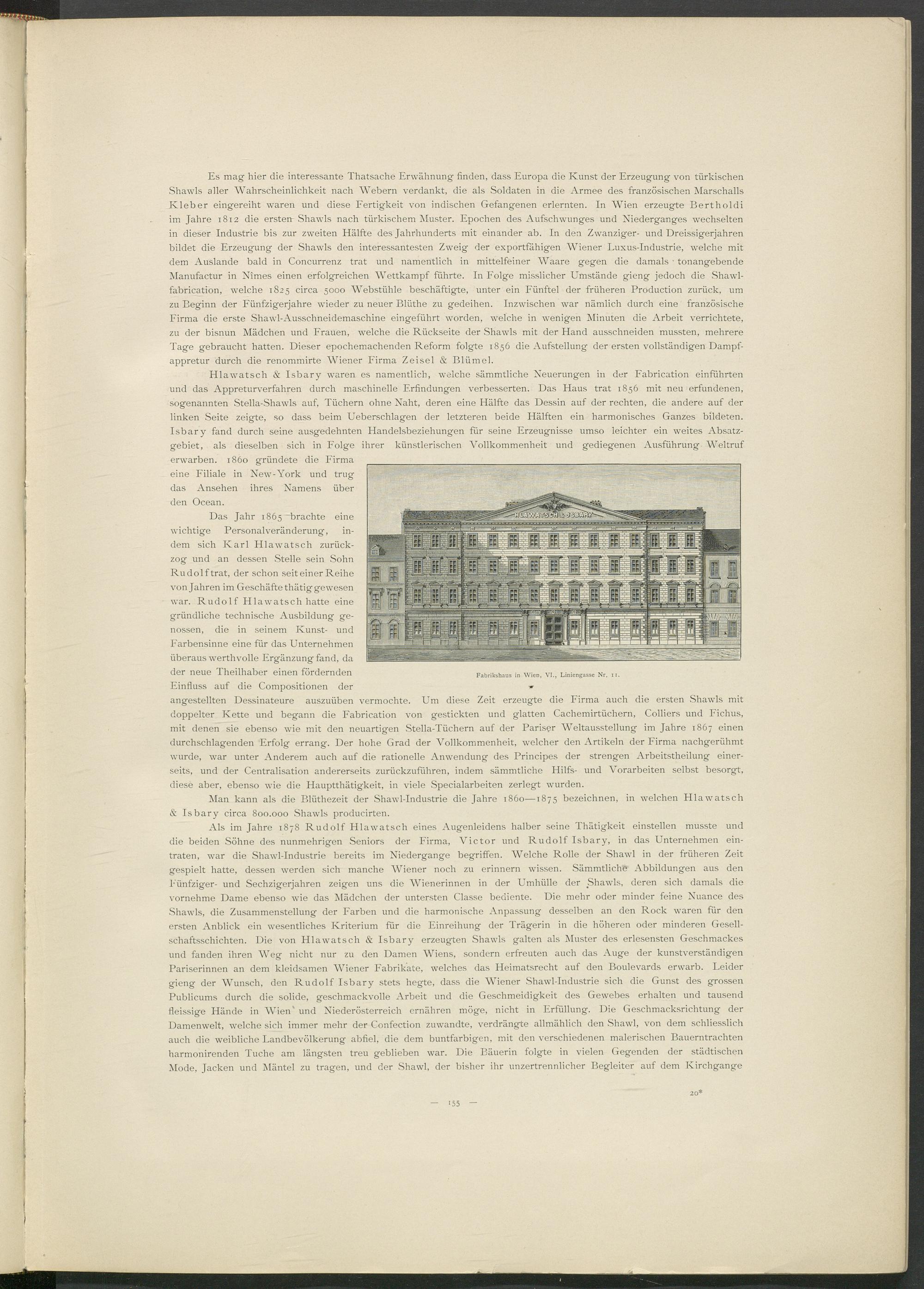 Man kann als die Blüthezeit der Shawl-Industrie die Jahre 1860—1875 bezeichnen, in welchen Hlawatsch & Isbary circa 800.000 Shawls producirten.