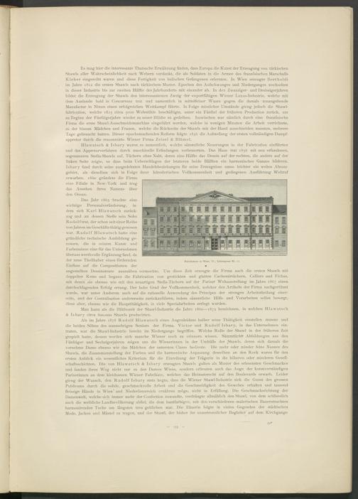 angestellten Dessinateure auszuüben vermochte. Um diese Zeit erzeugte die Firma auch die ersten Shawls mit doppelter Kette und begann die Fabrication von gestickten und glatten Cachemirtüchern, Colliers und Fichus, mit denen sie ebenso wie mit den neuartigen Stella-Tüchern auf der Pariser Weltausstellung im Jahre 1867 einen durchschlagenden Erfolg errang. Der hohe Grad der Vollkommenheit, welcher den Artikeln der Firma nachgerühmt wurde, war unter Anderem auch auf die rationelle Anwendung des Principes der strengen Arbeitstheilung einerseits, und der Centralisation andererseits zurückzuführen, indem sämmtliche Hilfs- und Vorarbeiten selbst besorgt, diese aber, ebenso wie die Hauptthätigkeit, in viele Specialarbeiten zerlegt wurden.