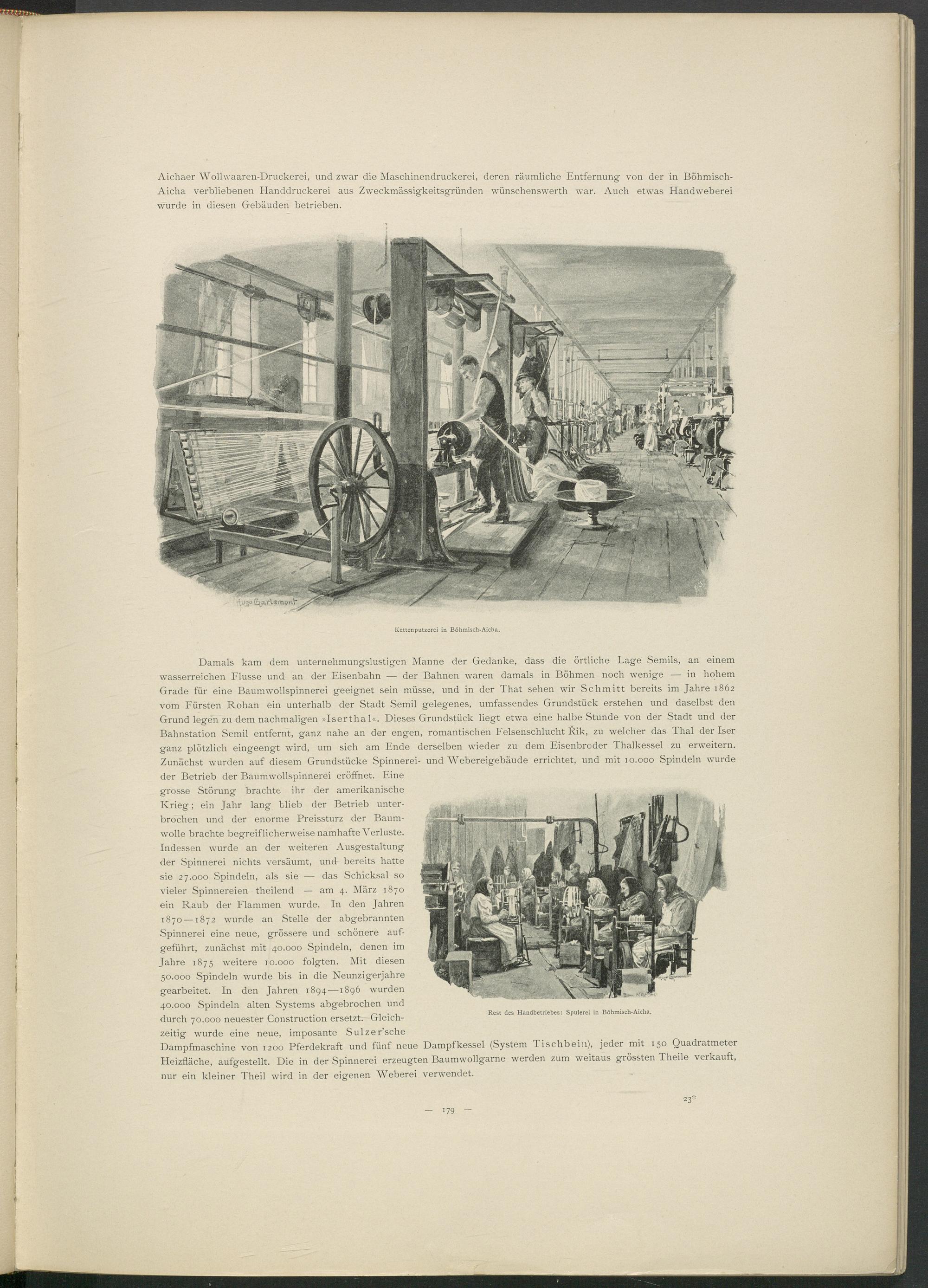 Aichaer Wollwaaren-Druckerei, und zwar die Maschinendruckerei, deren räumliche Entfernung von der in Böhmisch- Aicha verbliebenen Handdruckerei aus Zweckmässigkeitsgründen wünschen swerth war. Auch etwas Hand Weberei wurde in diesen Gebäuden betrieben.