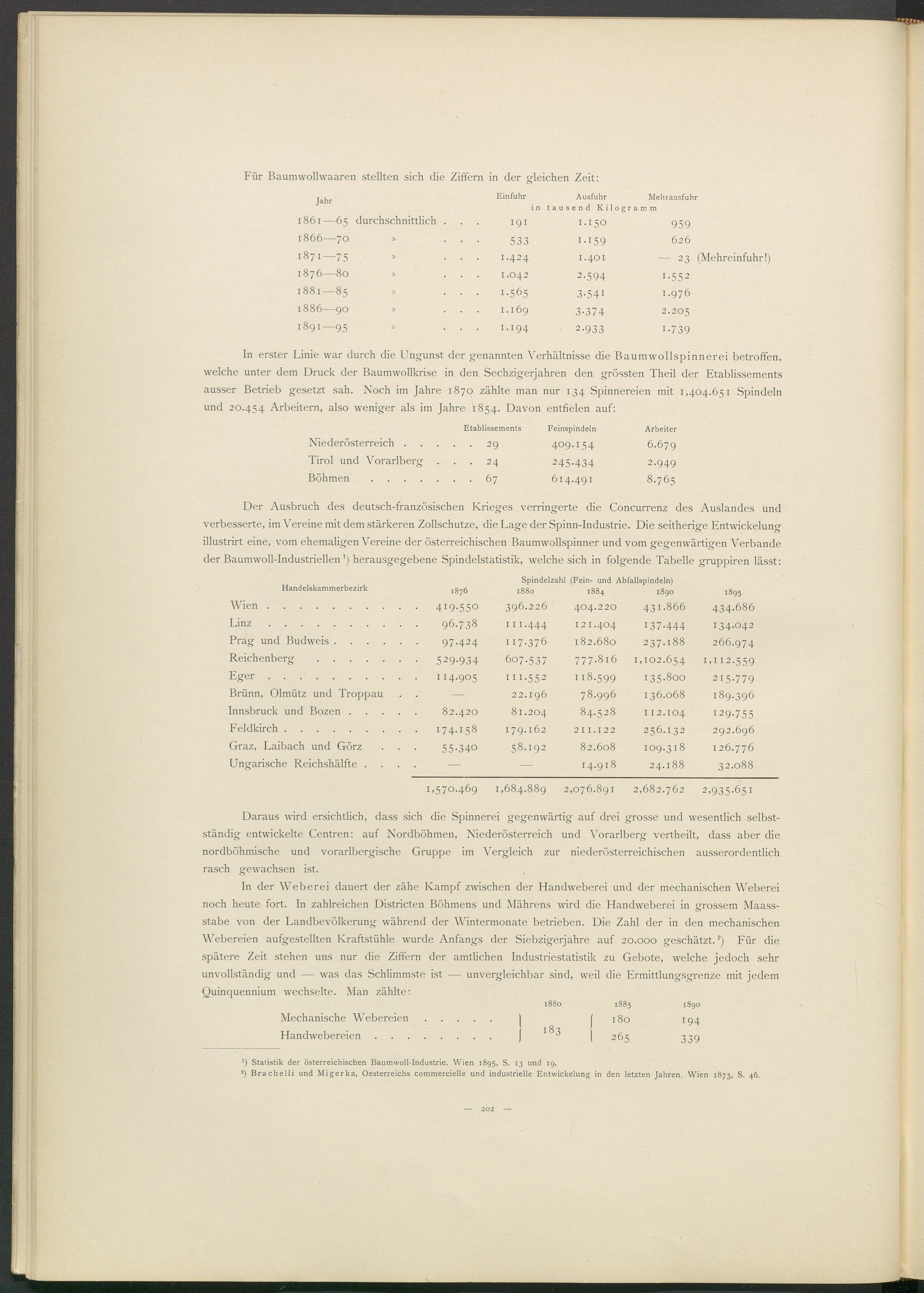 ') Statistik der österreichischen Baumwoll-Industrie. Wien 1895, S. 13 und ig.