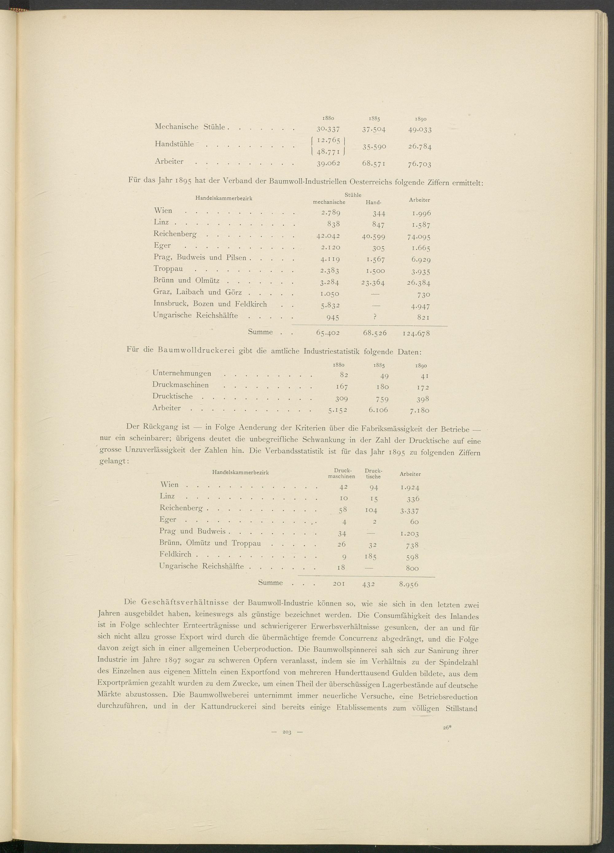 Für das Jahr 1895 hat der Verband der Baumwoll-Industriellen Oesterreichs folgende Ziffern ermittelt: