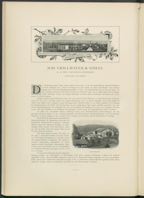 ie Entstehung dieser Firma reicht zurück in jene Zeit, in der die österreichische Baumwoll-Industrie in ihren Anfängen war. Johann Grillmayer senior wurde im Jahre 1836 Besitzer einer kleinen Handweberei und eines Manufacturgeschäftes in Linz. Die Handweberei liess er auf und führte nur das Geschäft vorerst unter der Firma Grillmayer &Wöss weiter, die er jedoch bald nach Aufnahme seiner Stiefsöhne Georg und Johann Hörzinger auf ihren heute bestehenden Wortlaut Joh. Grillmayer & Söhne änderte.