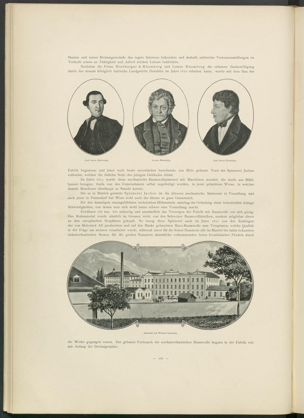 Die so in Betrieb gesetzte Spinnerei Juchen ist die älteste mechanische Spinnerei in Vorarlberg und nach jener in Pottendorf bei Wien wohl auch die älteste in ganz Oesterreich.