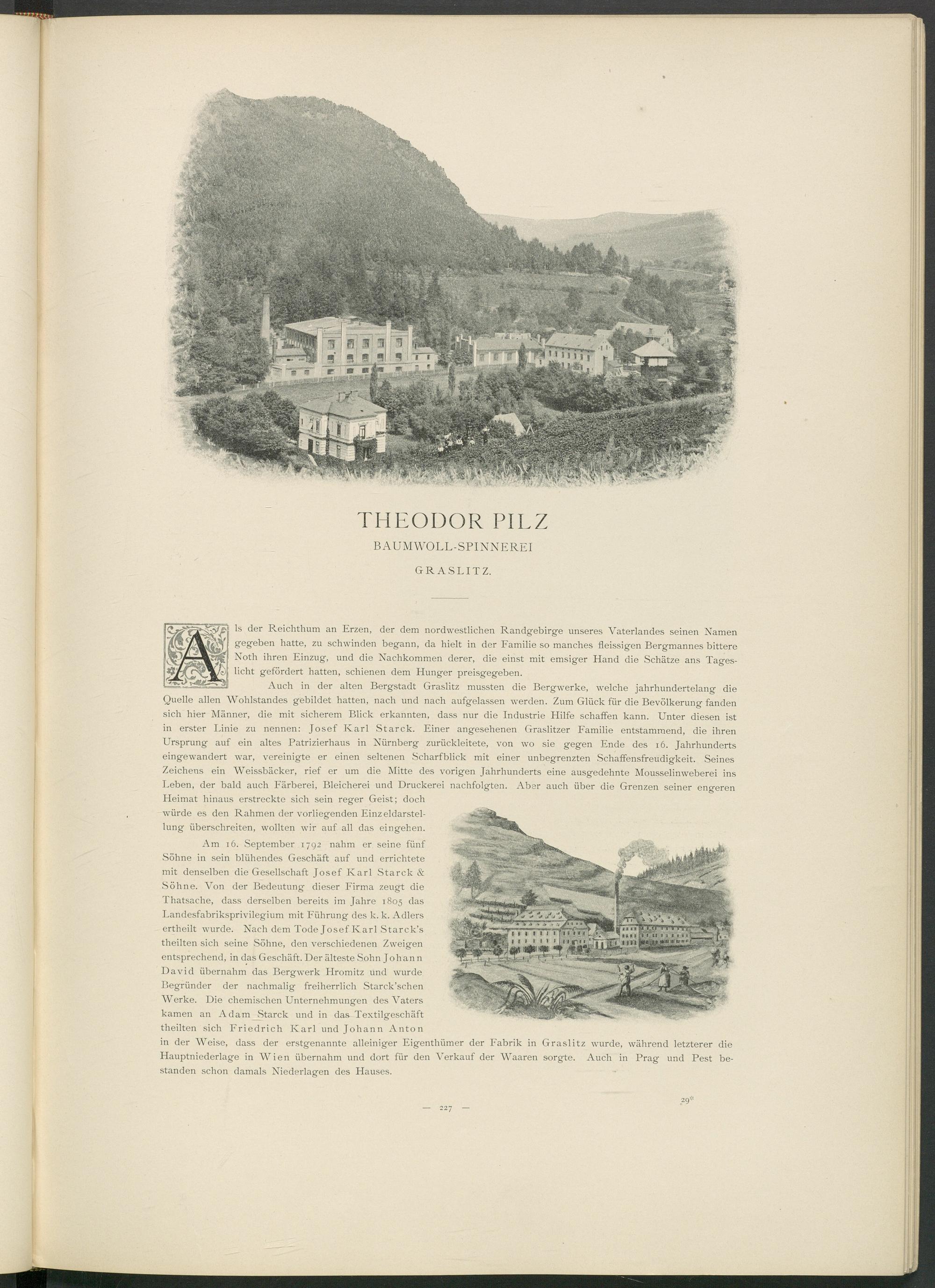 Söhne. Von der Bedeutung dieser Firma zeugt die Thatsaelie, dass derselben bereits im Jahre 1805 das Landesfabriksprivilegium mit Führung des k. k. Adlers ertheilt wurde. Nach dem Tode Josef Karl Starck’s theilten sich seine Söhne, den verschiedenen Zweigen entsprechend, in das Geschäft. Der älteste Sohn Johann David übernahm das Bergwerk PIromitz und w T urde Begründer der nachmalig freiherrlich Starck’schen Werke. Die chemischen Unternehmungen des Vaters kamen an Adam Starck und in das Textilgeschäft theilten sich Friedrich Karl und Johann Anton