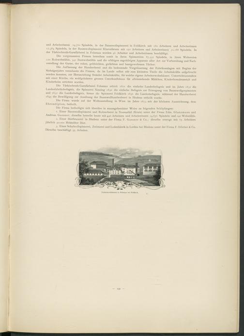 Die vorgenannten Firmen betreiben somit in ihren Spinnereien 87.332 Spindeln, in ihren Webereien 220 Rohwebstühle, 342 Buntwebstühle und die nöthigen zugehörigen Apparate aller Art zur Vorbereitung und Nachveredlung der Garne, der rohen, gebleichten, gefärbten und buntgewobenen Tücher.