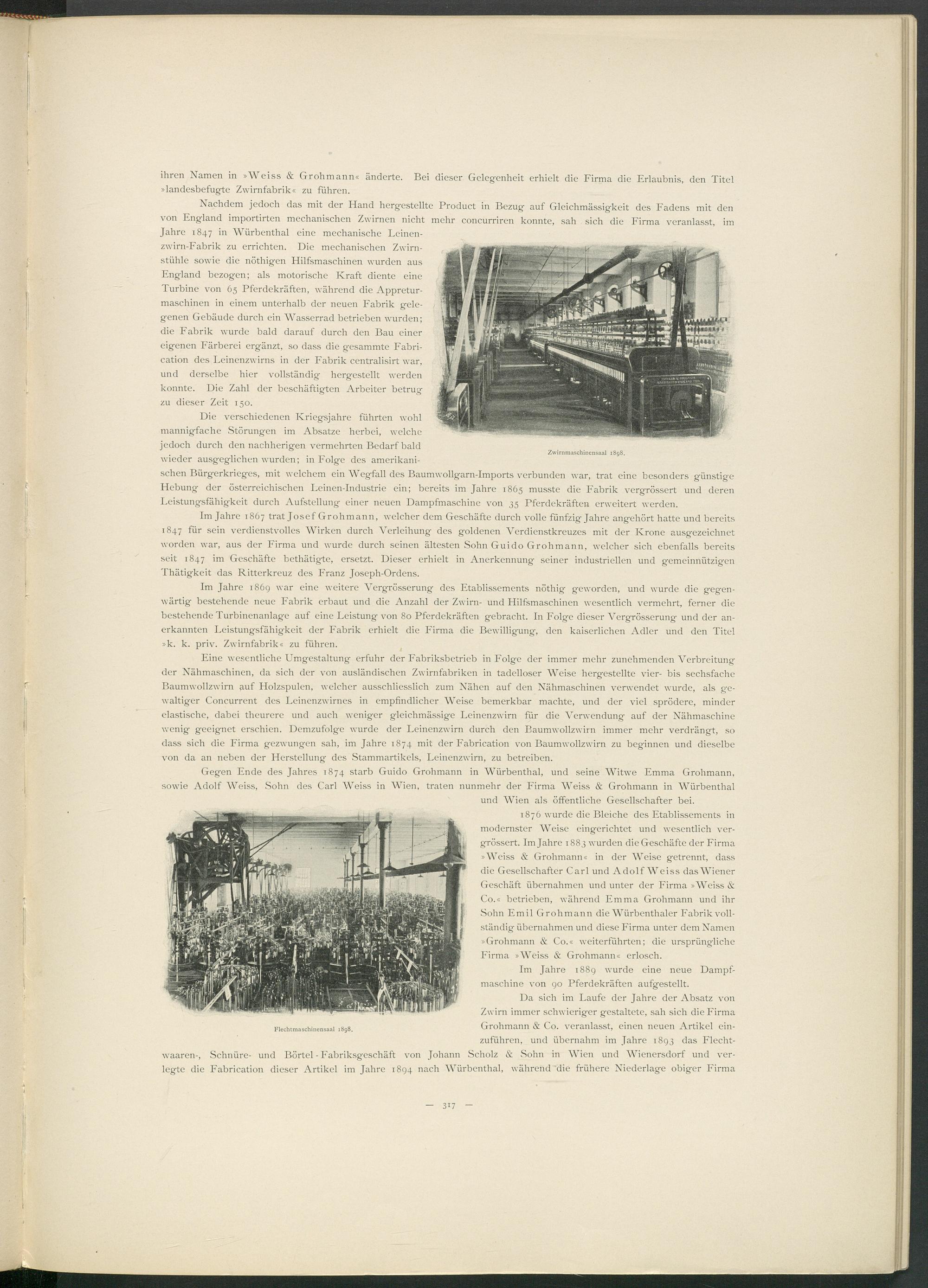 ihren Namen in »Weiss & Grohmann« änderte. Bei dieser Gelegenheit erhielt die Firma die Erlaubnis, den Titel »landesbefugte Zwirnfabrik« zu führen.