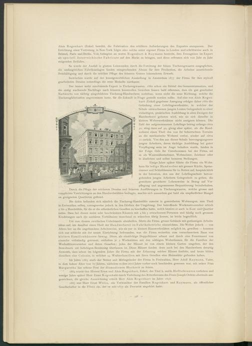 Alois Regenhart (Enkel) bemüht, die Fabrication den erhöhten Anforderungen des Exportes anzupassen. Der Errichtung einer Vertretung in New-York folgte eine solche unter eigener Firma in London und schrittweise auch in Brüssel, Paris und.Berlin. Von Anbeginn an waren Regenhart & Raymann bestrebt, ihre Erzeugnisse im Export als speciell österreichische Fabricate auf den Markt zu bringen, und diese erfreuten sich von Jahr zu Jahr steigenden Beifalles.