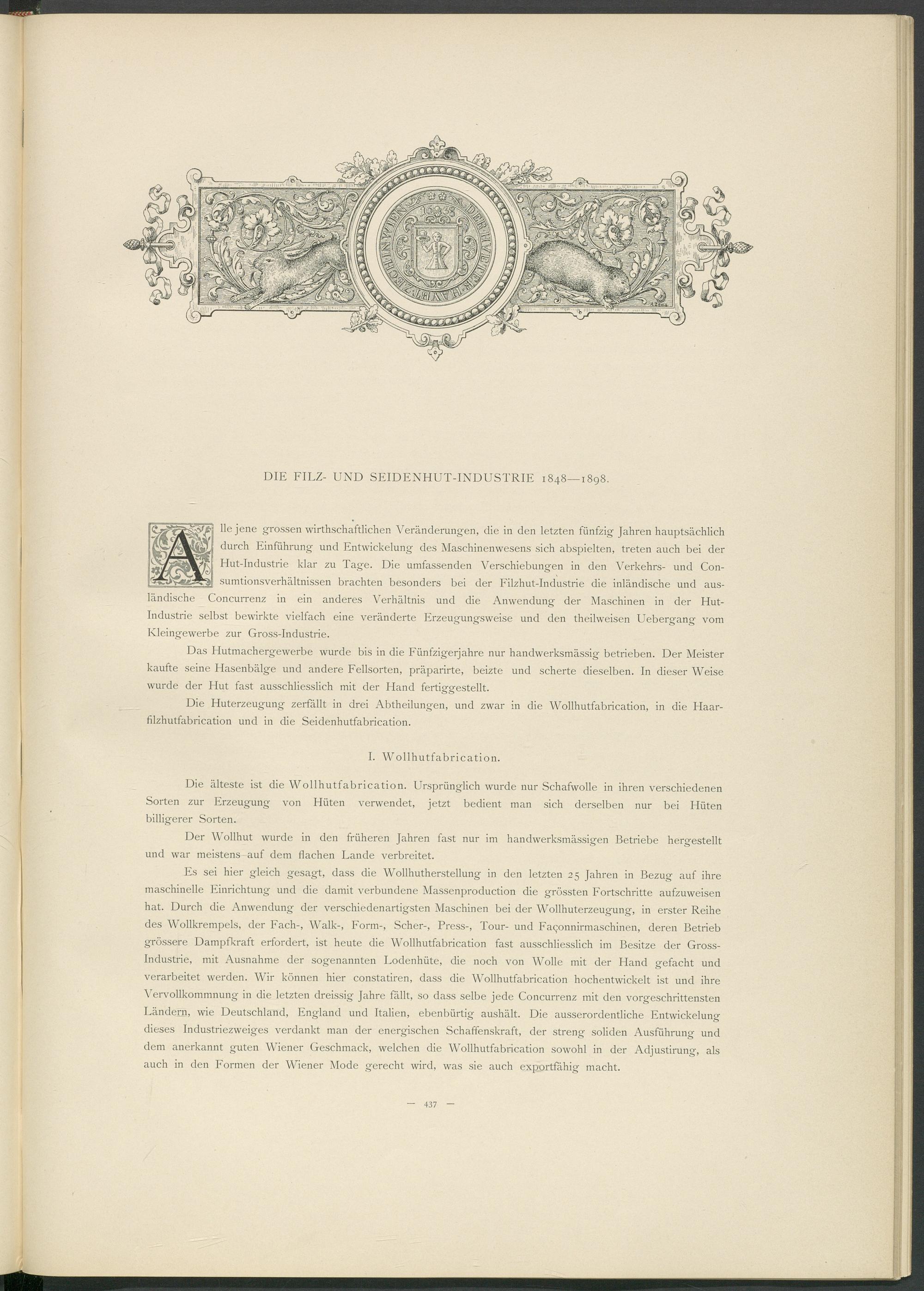 DIE FILZ- UND SEIDENHUT-INDUSTRIE 1848—1898.