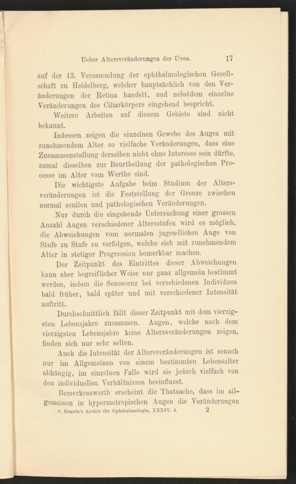 Durchschnittlich fällt dieser Zeitpunkt mit dem vierzigsten Lebensjahre zusammen. Augen, welche nach dem vierzigsten Lebensjahre keine Altersveränderungen zeigen, finden sich nur sehr selten.