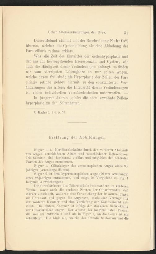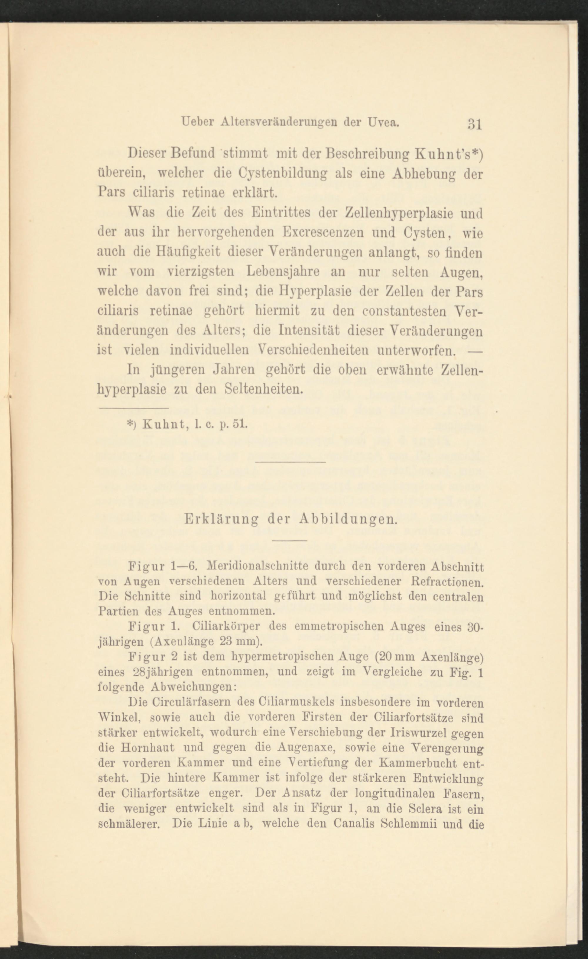 Dieser Befund stimmt mit der Beschreibung Kuhnt’s*) überein, welcher die Cystenbildung als eine Abhebung der Pars ciliaris retinae erklärt.