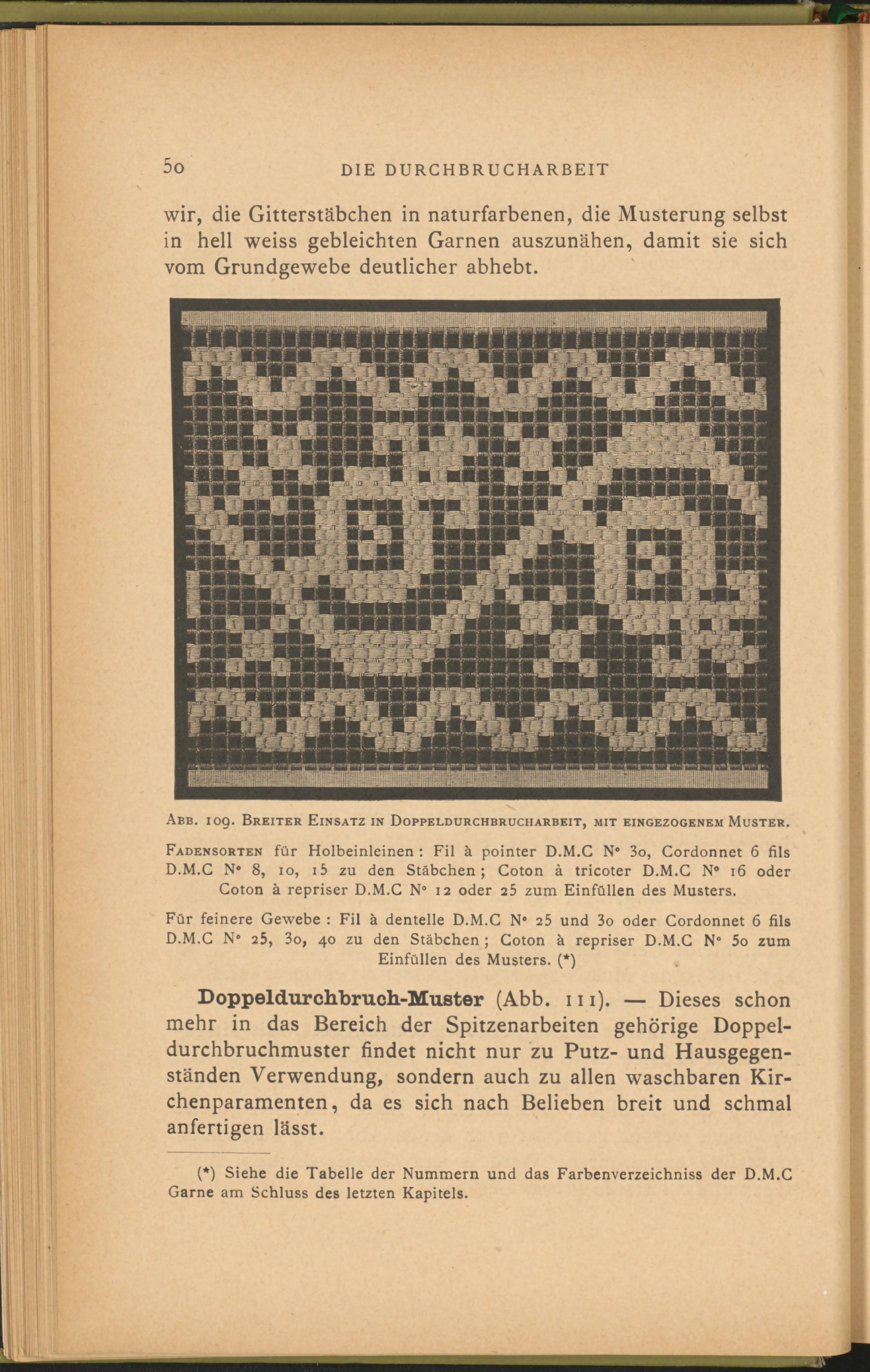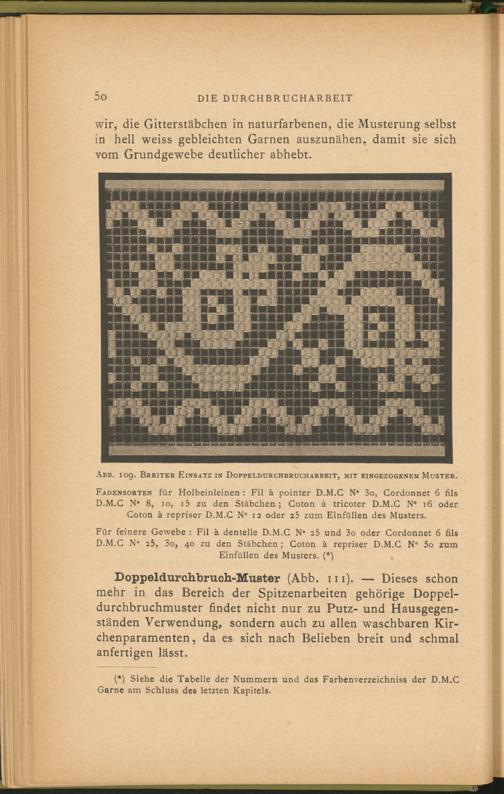 (*) Siehe die Tabelle der Nummern und das Farbenverzeichniss der D.M.C Garne am Schluss des letzten Kapitels.