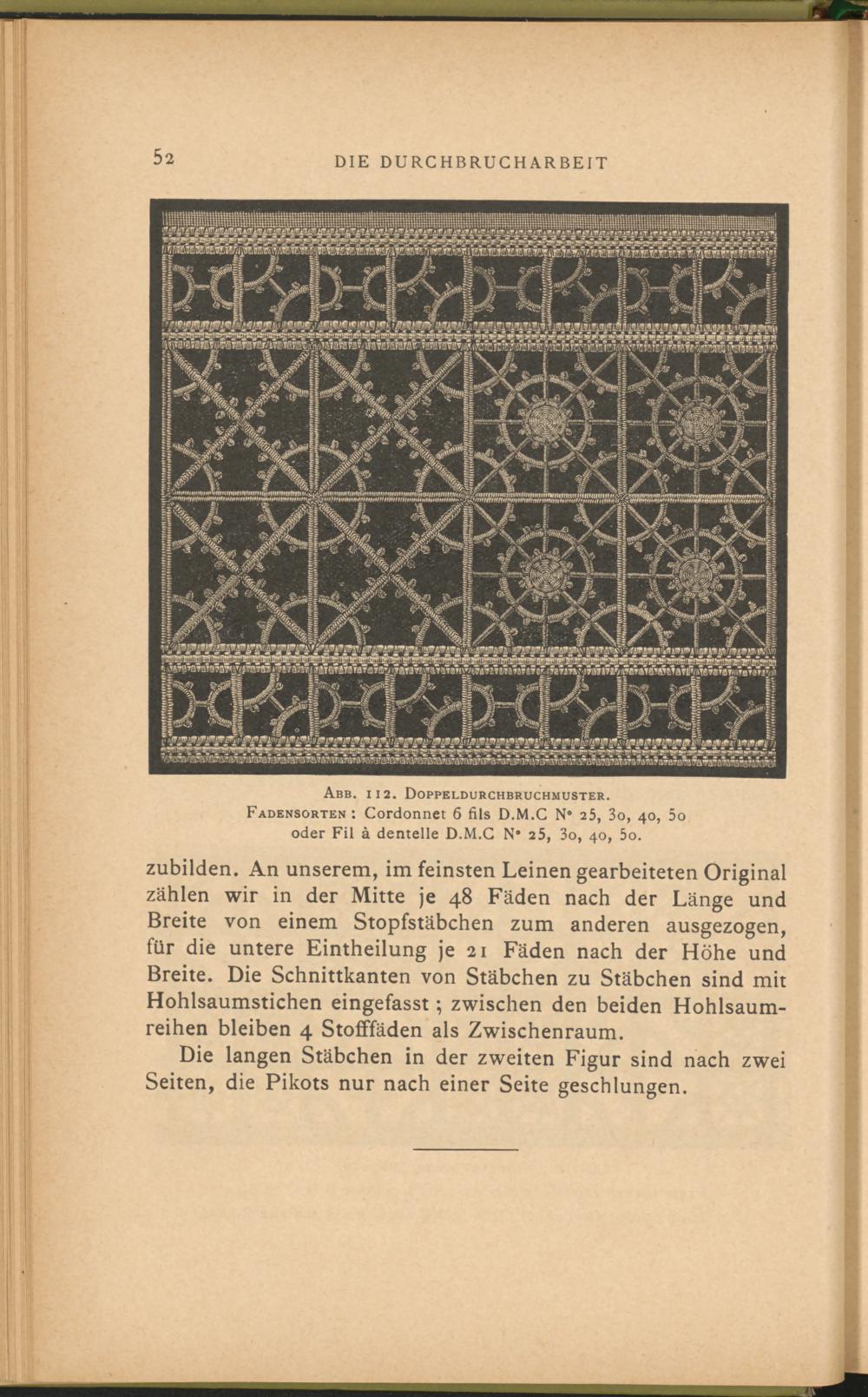 Abb. ii 2. Doppeldurchbruchmuster. Fadensorten : Cordonnet 6 fils D.M.C N" 25, 3o, 40, 5o oder Fil à dentelle D.M.C N* 25, 3o, 40, 5o.
