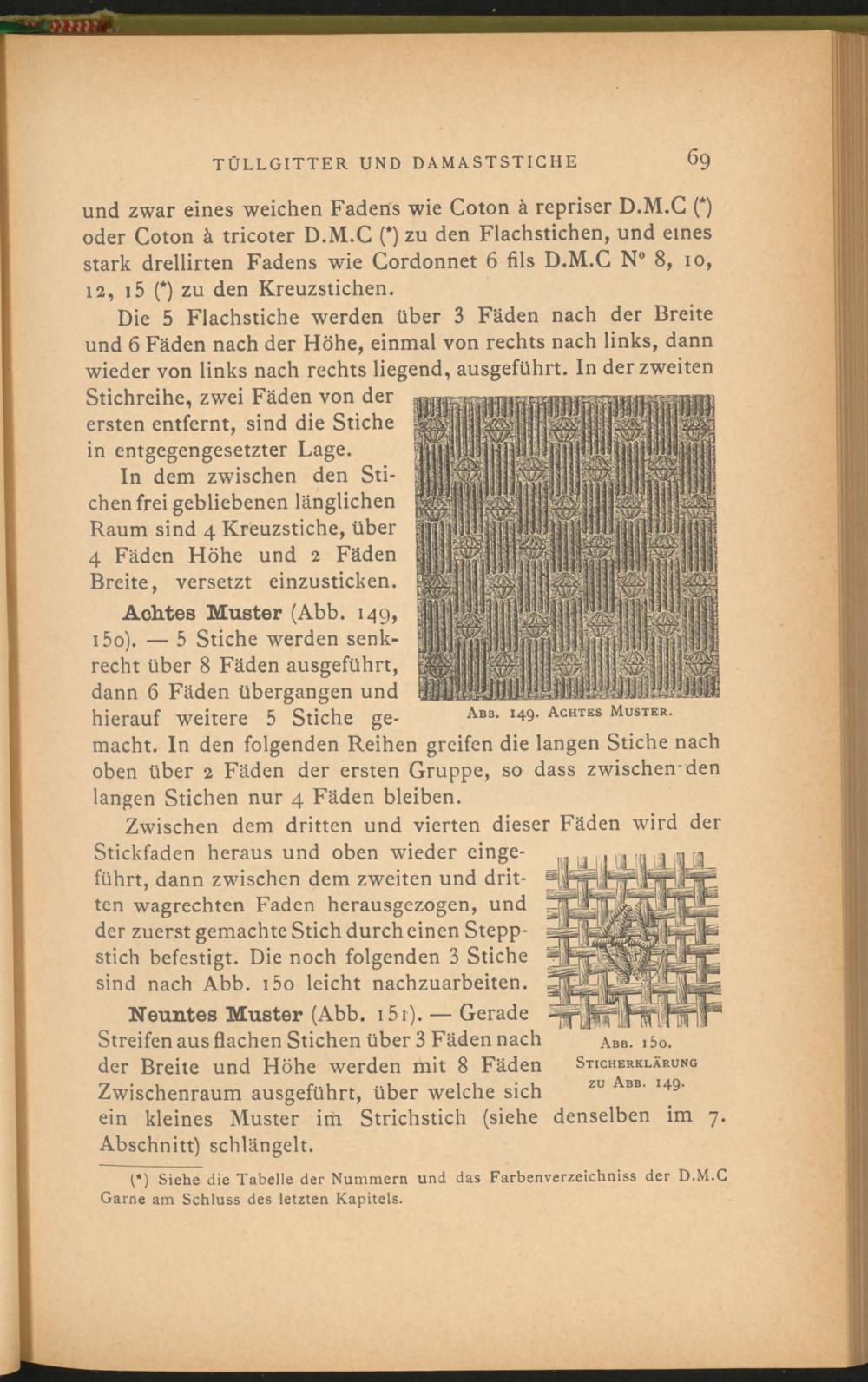 I*) Siehe die Tabelle der Nummern und das Farbenverzeichniss der D.M.C Garne am Schluss des letzten Kapitels.