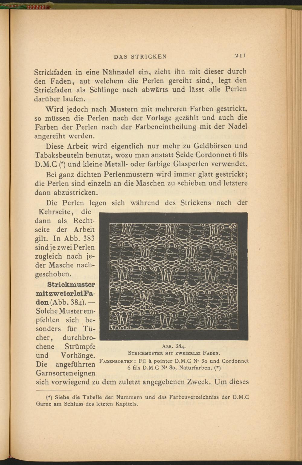 Strickmuster mit z weierleiFa- den(Abb. 384). —