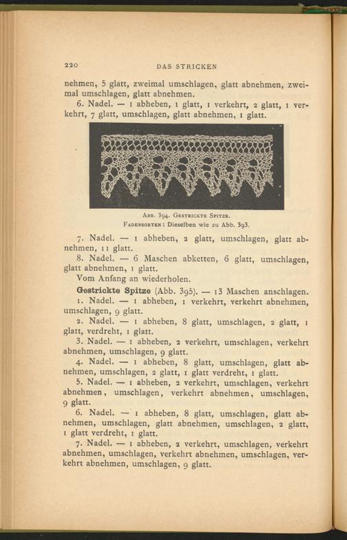 G-estrickte Spitze (Abb. 395). — i 3 Maschen anschlagen.