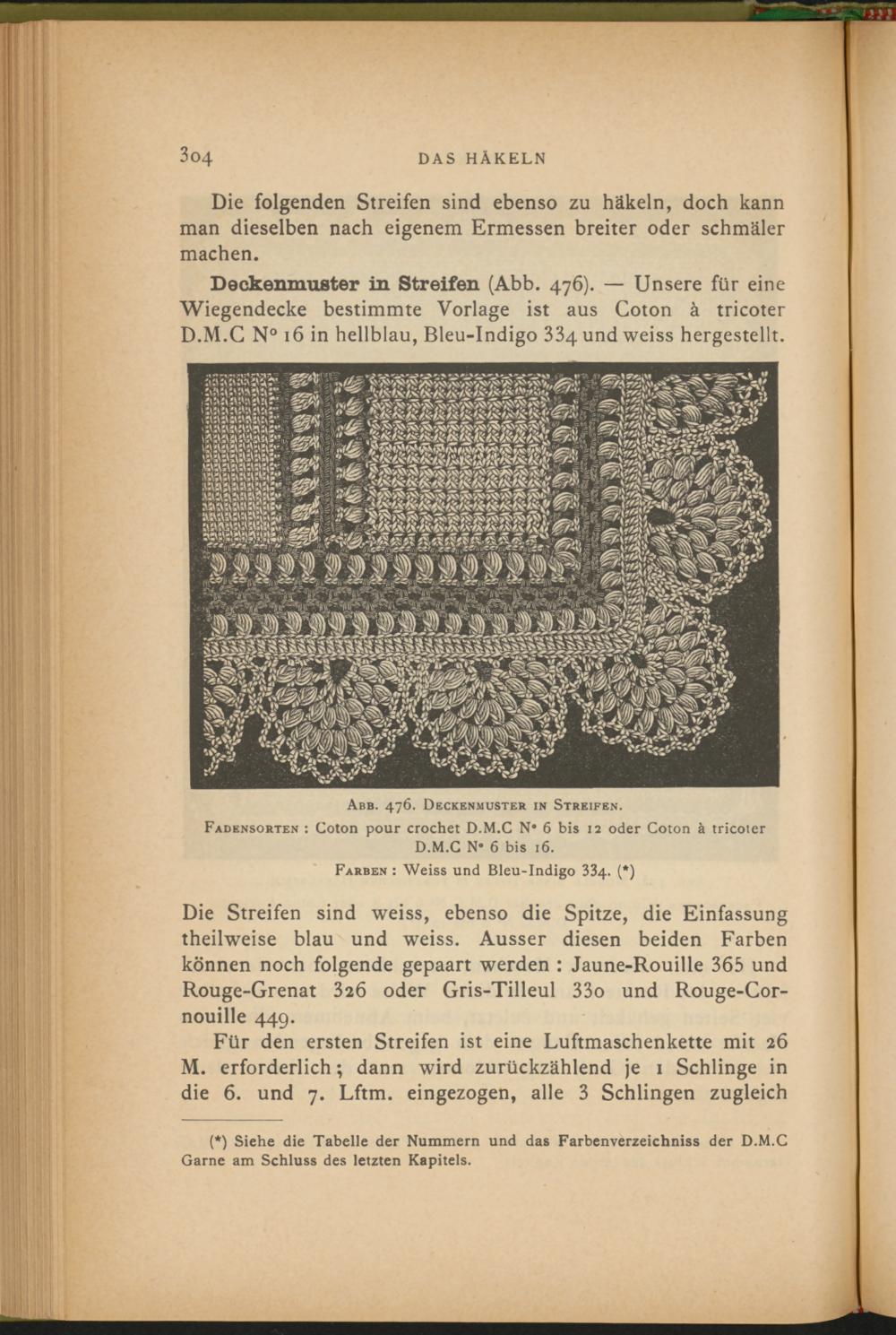 (*) Siehe die Tabelle der Nummern und das Farbenverzeichniss der D.M.C Garne am Schluss des letzten Kapitels.