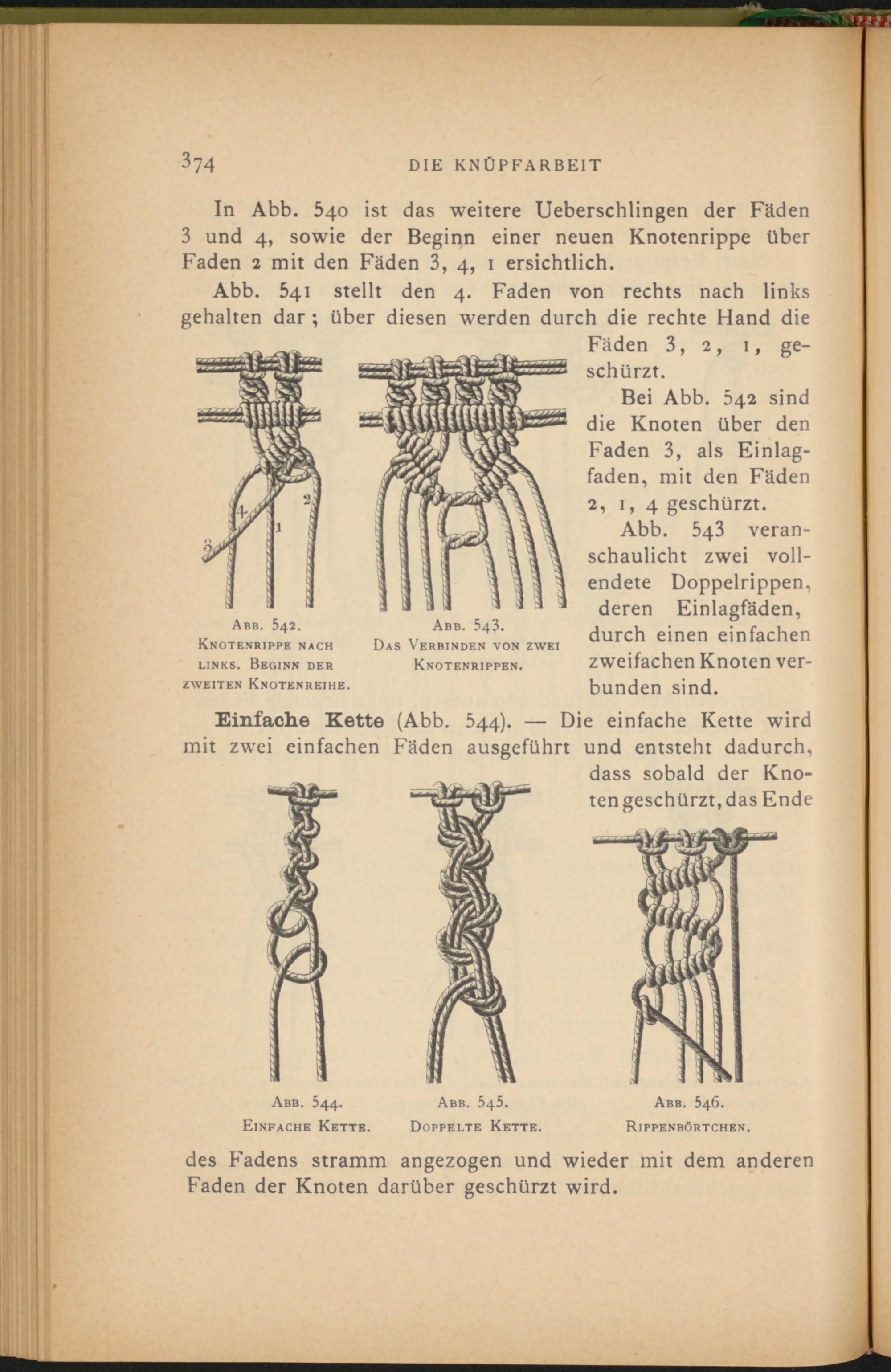 Abb. 541 stellt den 4. Faden von rechts nach links gehalten dar; über diesen werden durch die rechte Hand die