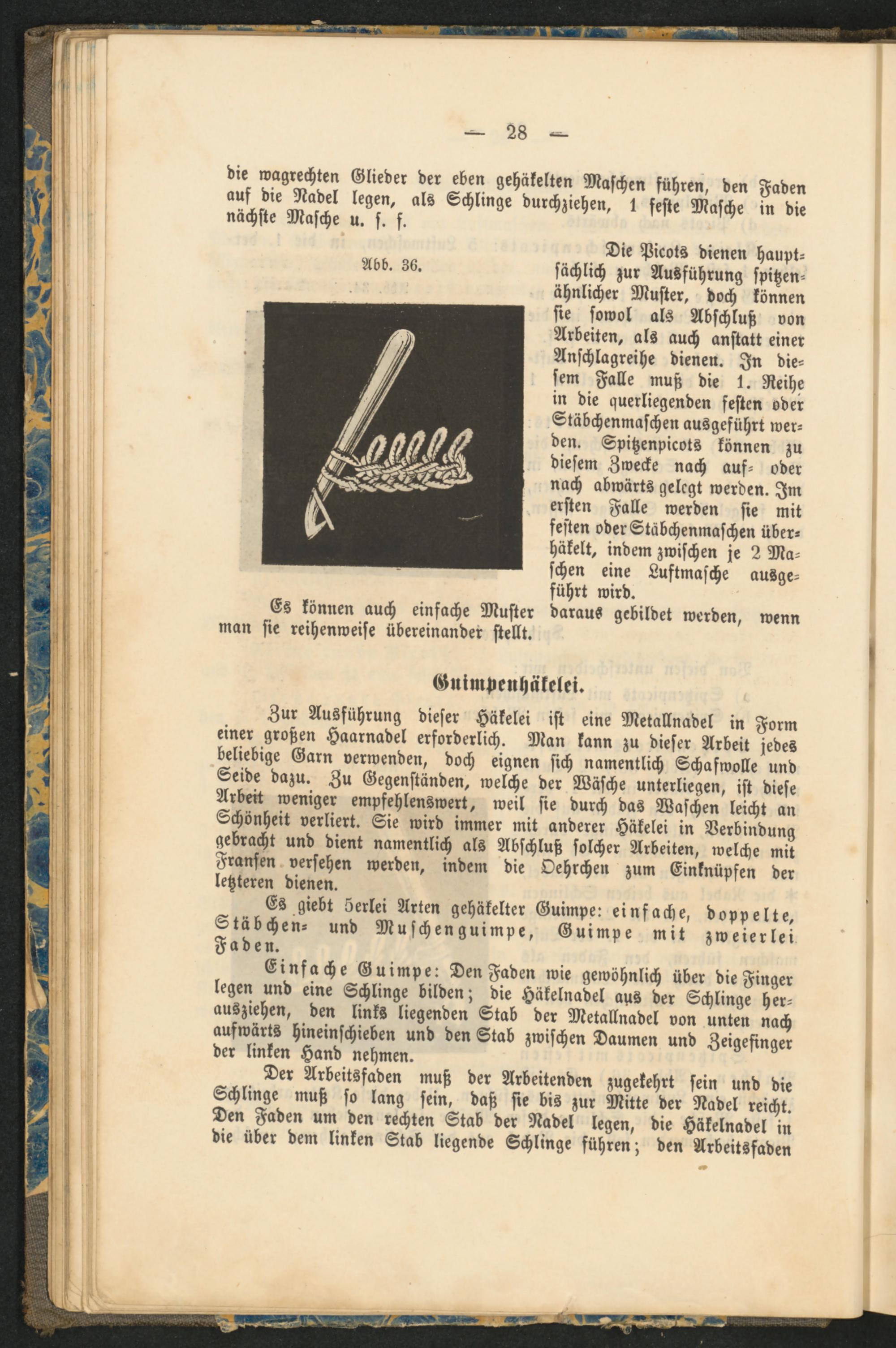 Es giebt derlei Arten gehäkelter Guimpe: einfache, doppelte, Stäbchen- und Muschenguimpe, Guimpe mit zweierlei Faden.