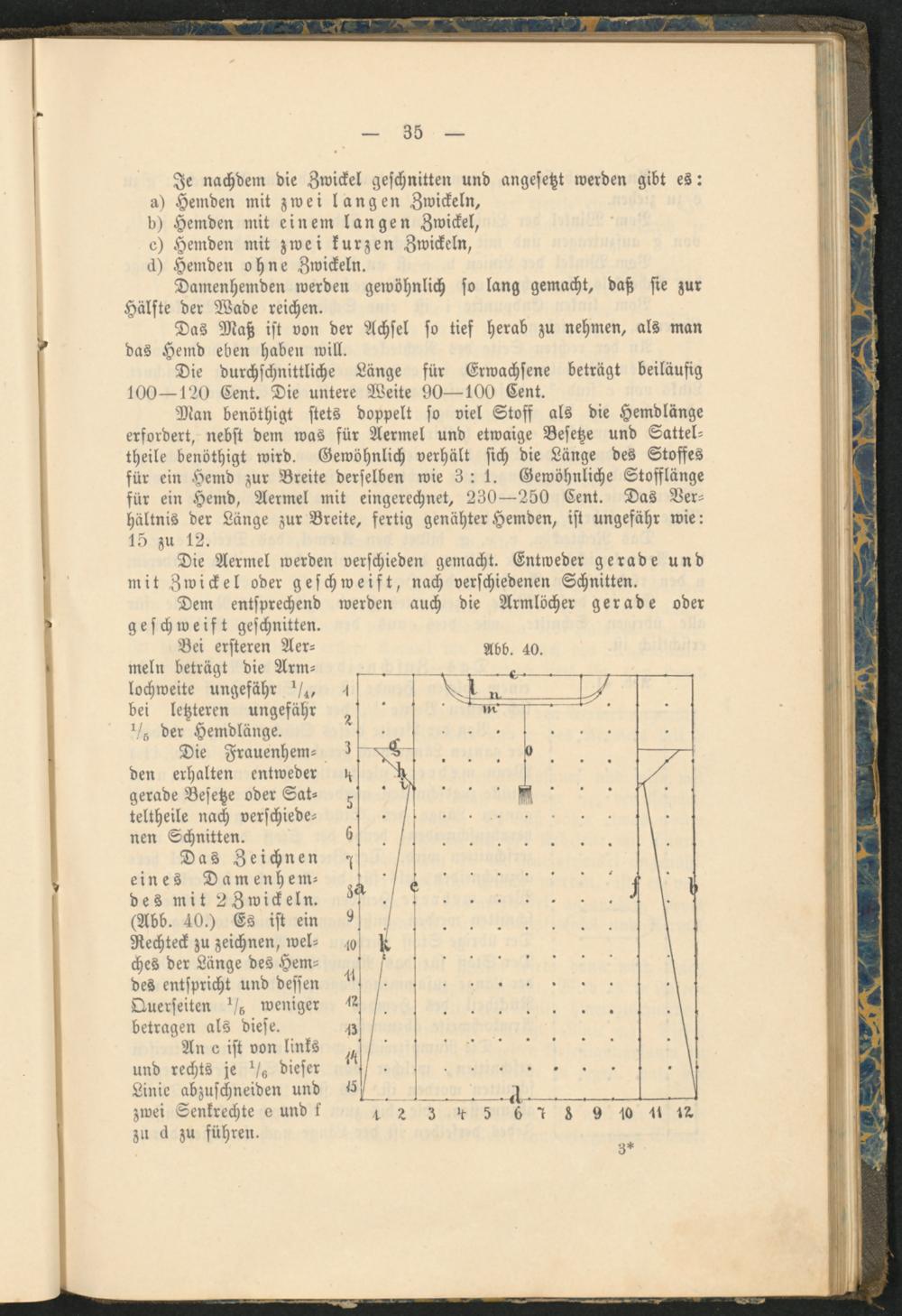 (Abb. 40.) Es ist ein Rechteck zu zeichnen, welches der Länge des Hemdes entspricht und dessen Querseiten */5 weniger betragen als diese.