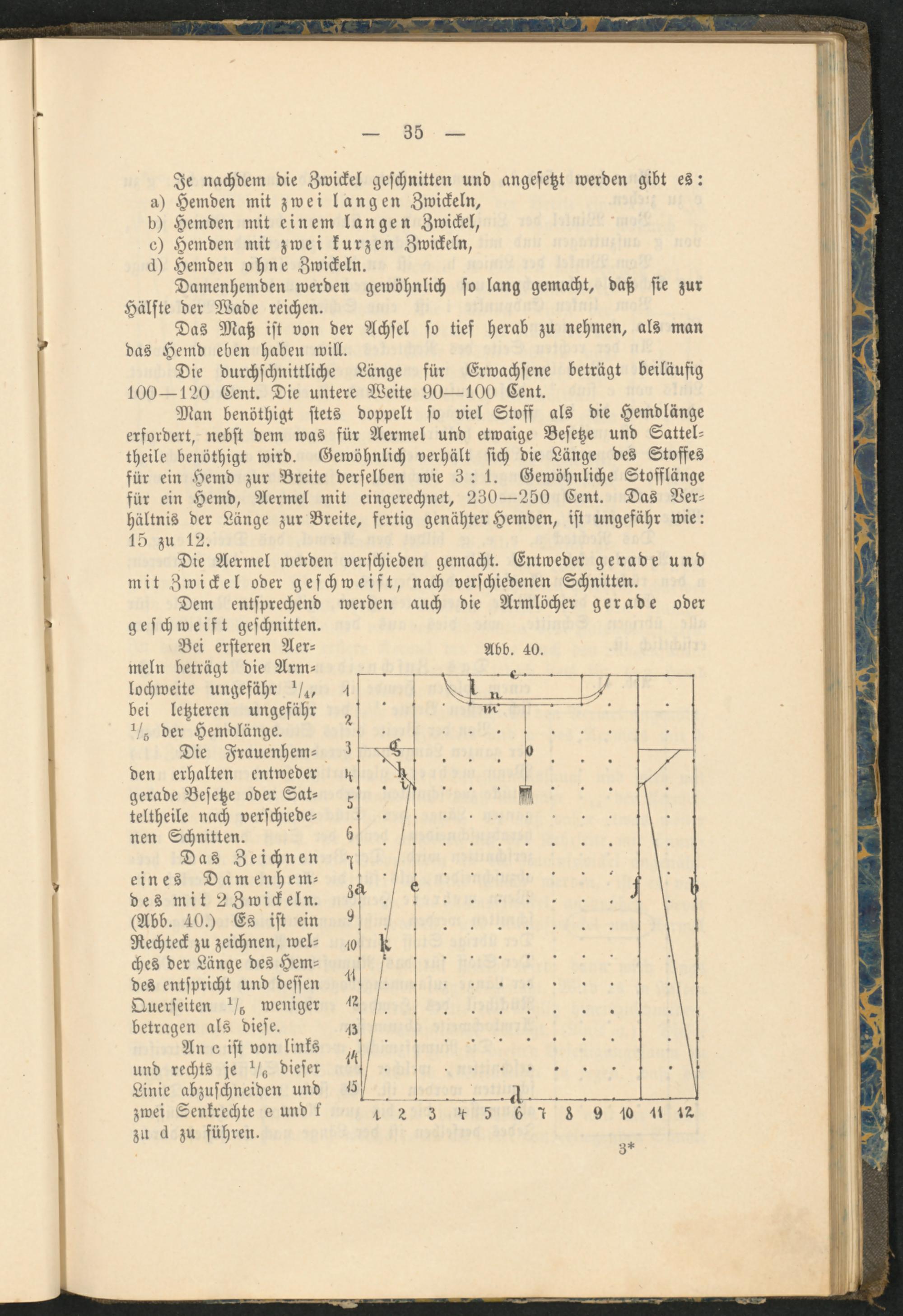 Das Maß ist von der Achsel so tief herab zu nehmen, als man das Hemd eben haben will.
