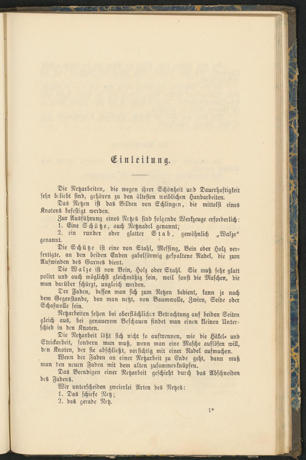 Die Netzarbeit läßt sich nicht so austrennen, wie die Häkel- und Strickarbeit, sondern man muß, wenn man eine Masche auflösen will, den Knoten, der sie abschließt, vorsichtig mit einer Nadel aufmachen.
