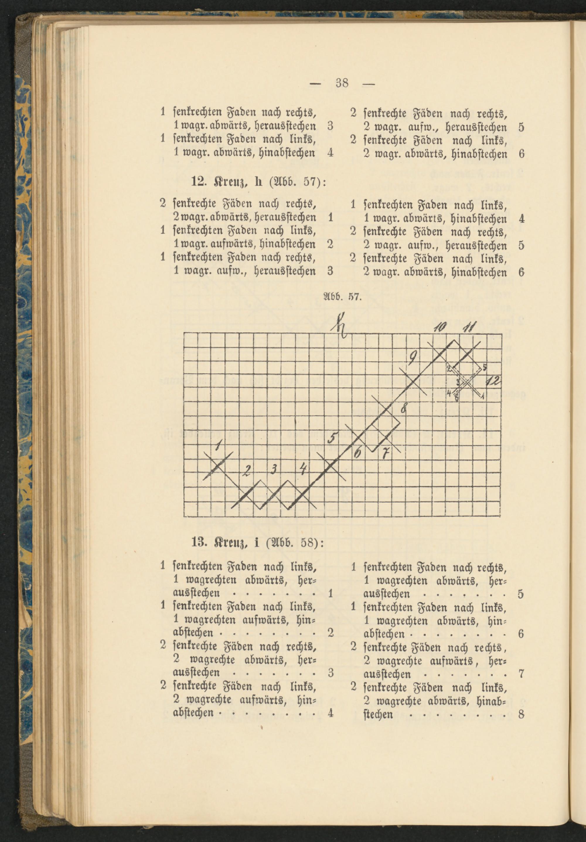 2 wagr. abwärts, Herausstechen 1 1 senkrechten Faden nach links,