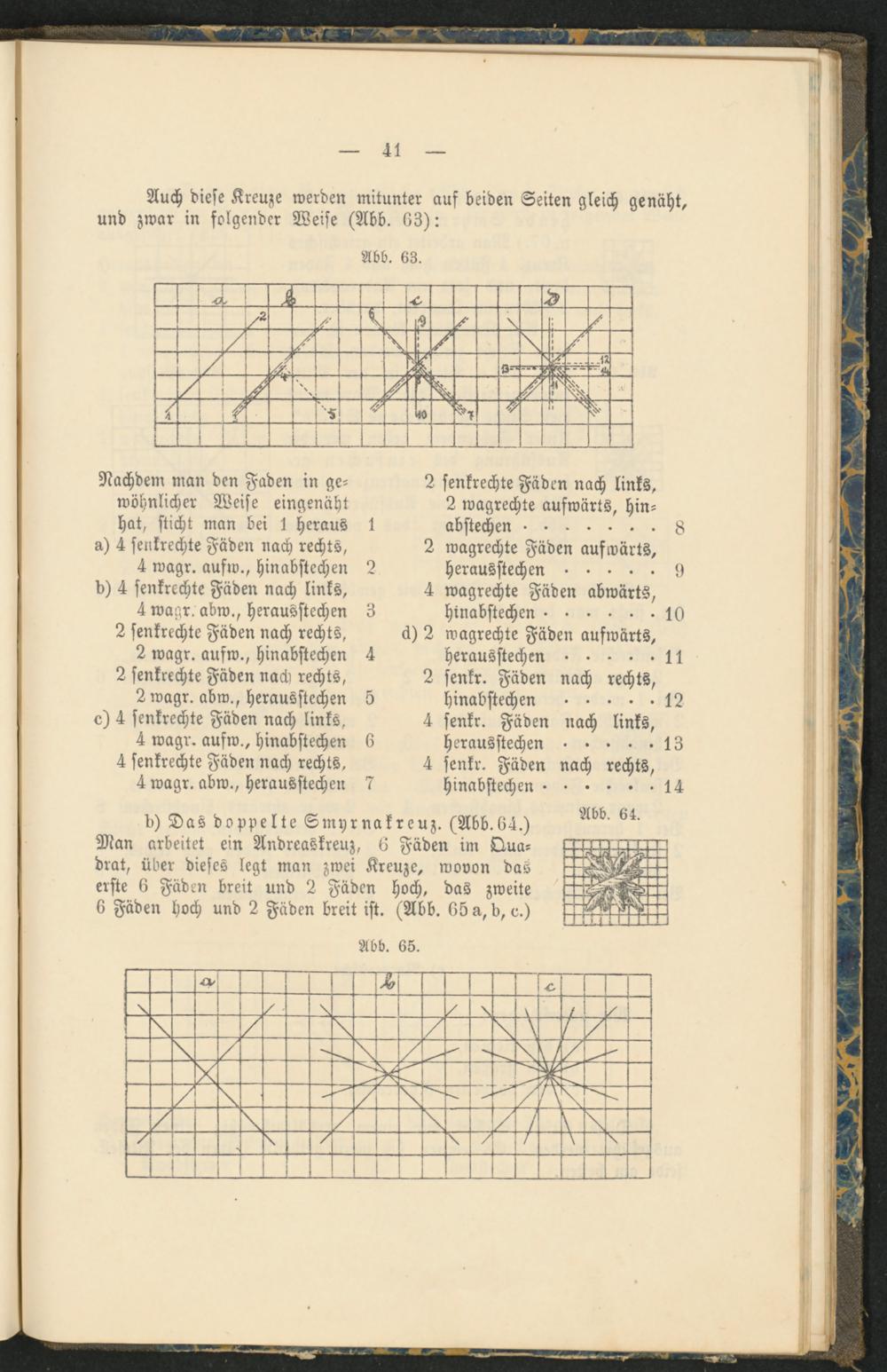 Auch diese Kreuze werden mitunter auf beiden Seiten gleich genäht, und zwar in folgender Weise (Abb. 63):