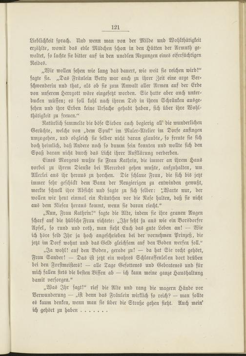 „Was Ihr sagt!" rief die Alte und rang die magern Hände vor Verwunderung — „ist denn das Fräulein wirklich so reich? — man sollte es kaum denken, wenn man sie über die Straße gehen sieht. Auch mein' ich gehört zu haben.