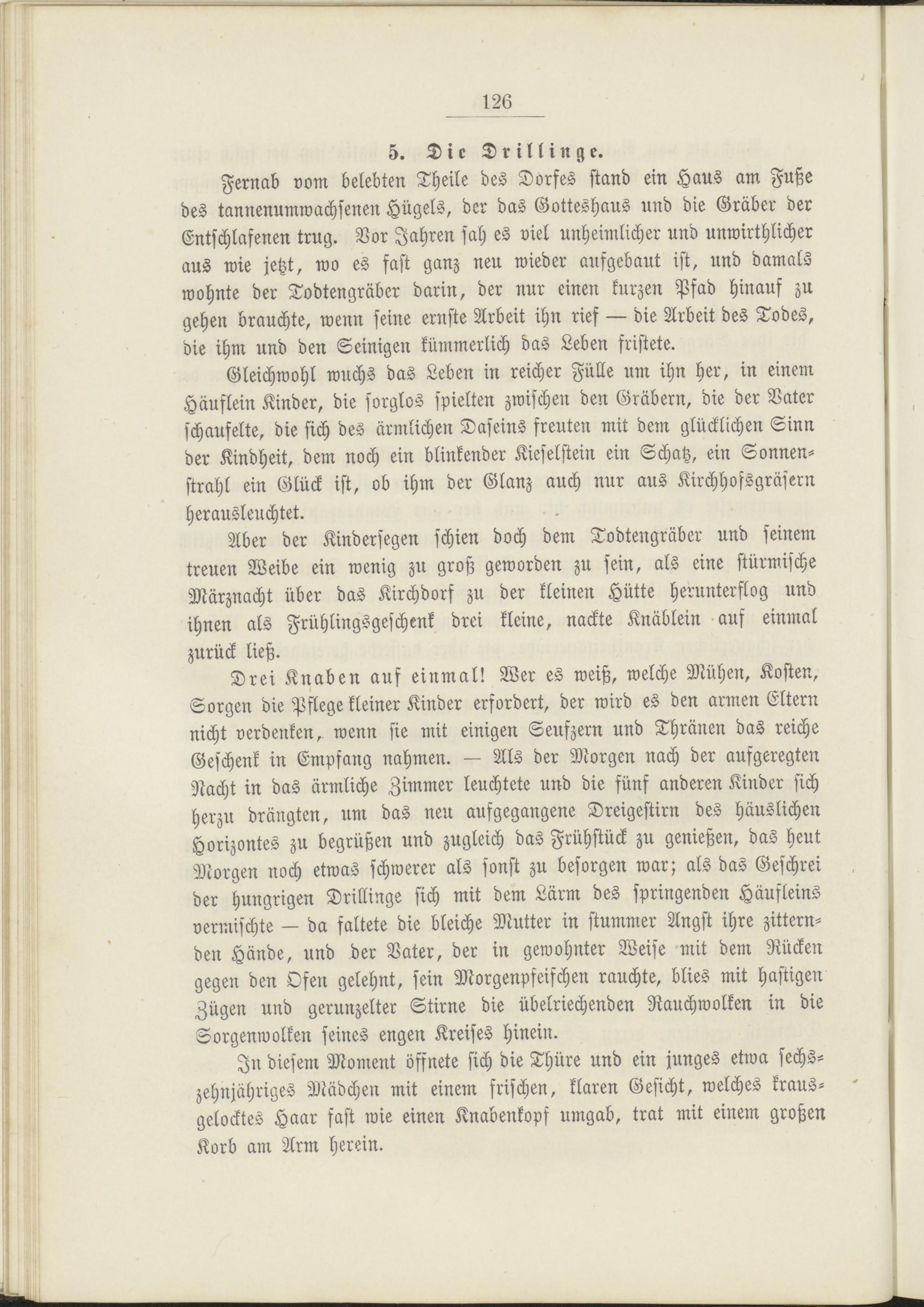 Aber der Kindersegen schien doch dem Todtengräber und seinem treuen Weibe ein wenig zu groß geworden zu sein, als eine stürmische Märznacht über das Kirchdorf zu der kleinen Hütte herunterflog und ihnen als Frühlingsgeschenk drei kleine, nackte Knäblein auf einmal zurück ließ.